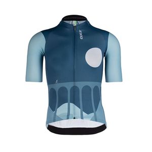 Het Q36.5 R2 Globe Trotter fietsshirt zorgt er dankzij het onderscheidende ontwerp voor dat je zeker zult opvallen tijdens je fietsrit! De mouwen zijn licht geribbeld, dit wordt Raglan genoemd. Hierdoor kan de wind makkelijk over de stof heen, dit is dus een aerodynamisch voordeel. De voorzijde van het shirt is gemaakt van een micro-geperforeerde stof, wat een hoog ademend vermogen heeft. De achterzijde is van een mesh in de vorm van een honingraad. Dit is stevig, maar vooral ook erg licht. Daardoor heeft het shirt een gewicht van slechts 110 gram in maat M. Ondanks die dunne stof, beschermt het shirt je tegen de zon met een hoge UV-bescherming.