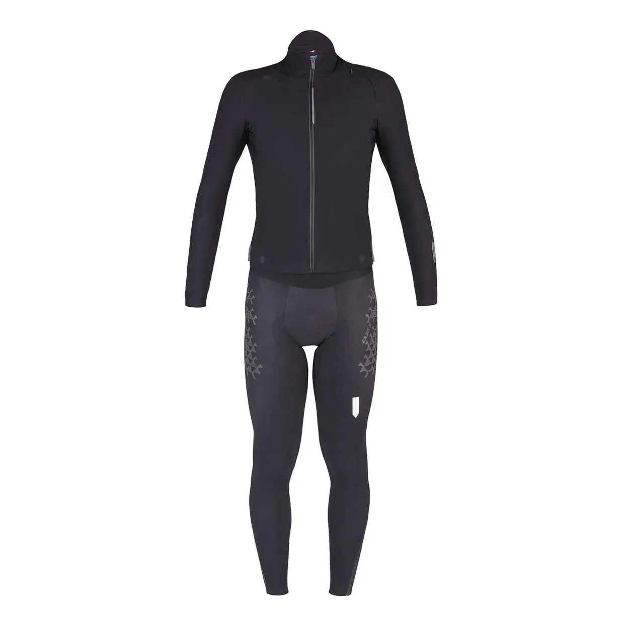 De Q36.5 Skinsuit Thermobolik Lang Zwart Heren is een comfortabel en mooi afgewerkte skinsuit voor de koudste dagen van het jaar. Met de Thermobolik skinsuit van Q36.5 ben je beschermd tegen alle elementen. De gebruikte technieken stammen af van het downhill skiën. Deze skinsuit is voorzien van het Road Safety System, wat betekent dat je extra beschermd bent bij een eventuele valpartij. De skinsuit houdt je lichaamswarmte goed vast, zodat je tijdens de koude winterdagen toch comfortabel en warm op de fiets kan zitten. In de opbergzakken kan je voldoende proviand of reservemateriaal meenemen. Dankzij de voorgevormde fit sluit het pak uitstekend aan op je lichaam. De windstopper welke in het schouderpaneel opgeborgen zit, kan met een magneet vastgezet worden zodat je extra beschermd bent tegen koude, snijdende wind.