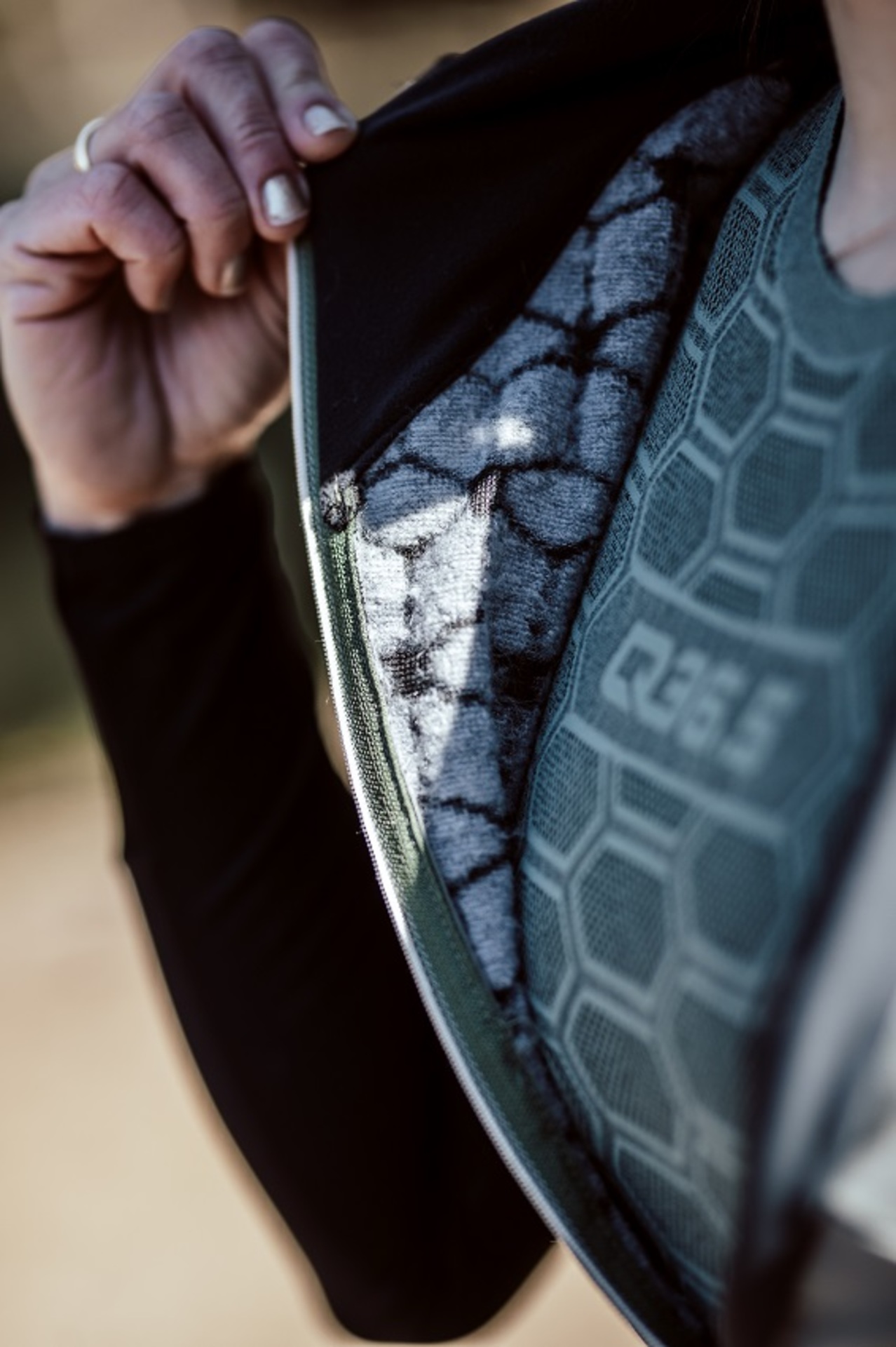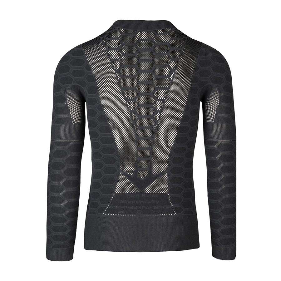 Het Three Ondershirt van Q36.5 is ontwikkeld voor intensief sporten in de tussenseizoenen. Het breiwerk, dan bijna naadloos is, biedt een ongekend draagcomfort. Het materiaal is lichtgewicht en scheur- en slijtvast. Het honingraatmotief met open mesh-stukken, reguleert lichaamswarmte vanaf zo’n 8 graden en voert zweet effectief af van de huid.