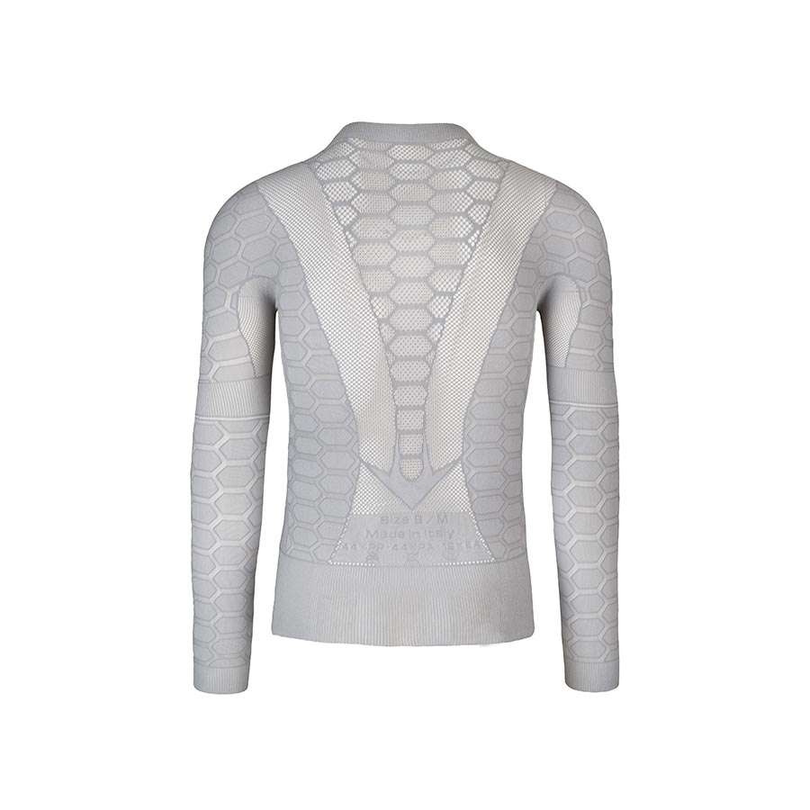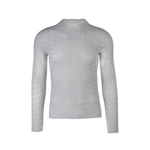 Het Three Ondershirt van Q36.5 is ontwikkeld voor intensief sporten in de tussenseizoenen. Het breiwerk, dan bijna naadloos is, biedt een ongekend draagcomfort. Het materiaal is lichtgewicht en scheur- en slijtvast. Het honingraatmotief met open mesh-stukken, reguleert lichaamswarmte vanaf zo’n 8 graden en voert zweet effectief af van de huid.