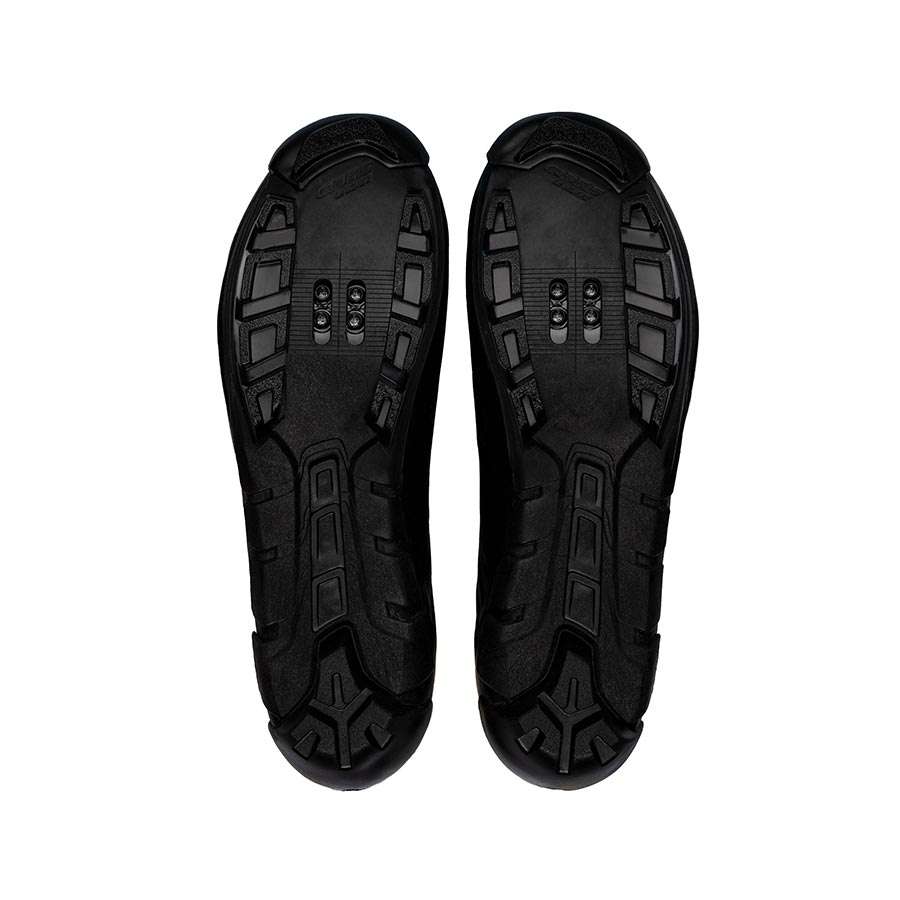 De carbonzool is ultra stijf en zorgt voor optimale krachtoverdracht naar de pedalen. De achterkant is zo ontworpen dat het werkt als een wervelkolom met minimale flexibiliteit. Het voordeel hiervan is dat het een elastische terugkeer (rebound-effect) heeft. Dit zorgt voor meer comfort en minder belasting op de spieren en pezen, tevens wordt de doorbloeding bevordert. De buitenzool van de MTB-schoenen is gericht op MTB- en gravelprestaties. Het biedt grip en comfort op de momenten dat je van de fiets moet.