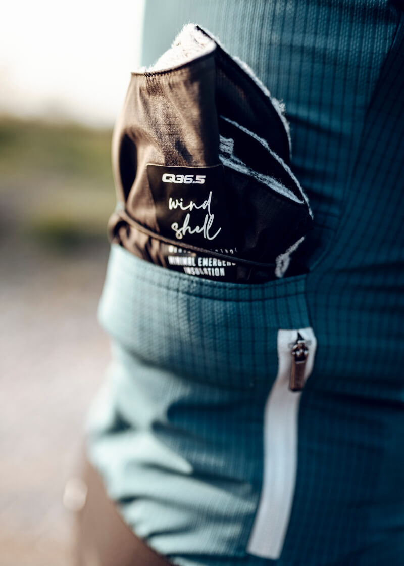 Het Q36.5 Wind Shell Windvest is gemaakt om jou warm te houden tijdens lange, koude afdalingen. Wanneer de afdaling ten einde is, kan je hem zeer compact opvouwen en in je achterzak meenemen. Dit windvest is gemaakt van een lichtgewicht, met hoge dichtheid geweven stof met geïsoleerde binnenkant. Het design is gebaseerd op de “Gazzetta” (de krant) die professionele renners vroeger onder hun kleding staken om zodoende warm te blijven tijdens lange afdalingen.