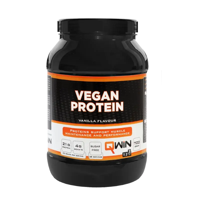 QWIN Vegan Protein 700 gram is een voedingsproduct dat het herstel van je spieren na een training versnelt en spieropbouw stimuleert. Je kunt het gebruiken voor het ontwikkelen van extra spierkracht en versnelling van het herstelproces, dus voor zowel team-, kracht- als duursporters is dit product geschikt. QWIN Vegan Protein is samengesteld uit Erwten eiwit isolaat en Tuinbonen eiwit isolaat.