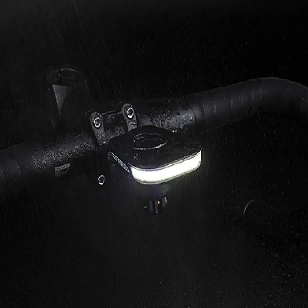 De koplamp houd je stuur zo clean mogelijk doordat deze koplamp onder je Garmin of Wahoo fietscomputer geplaatst kan worden