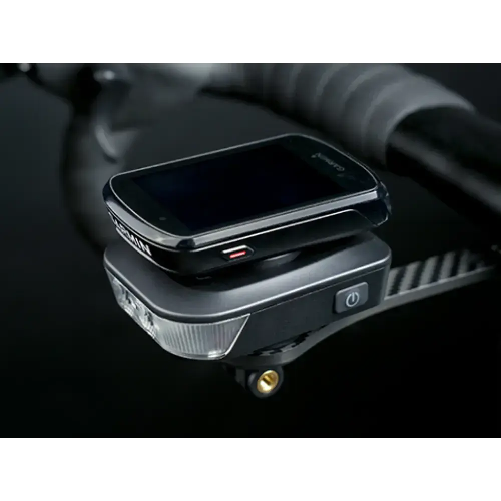 Koplamp is perfect te integreren onder je fietscomputer dankzij Garmin-stijl mount
