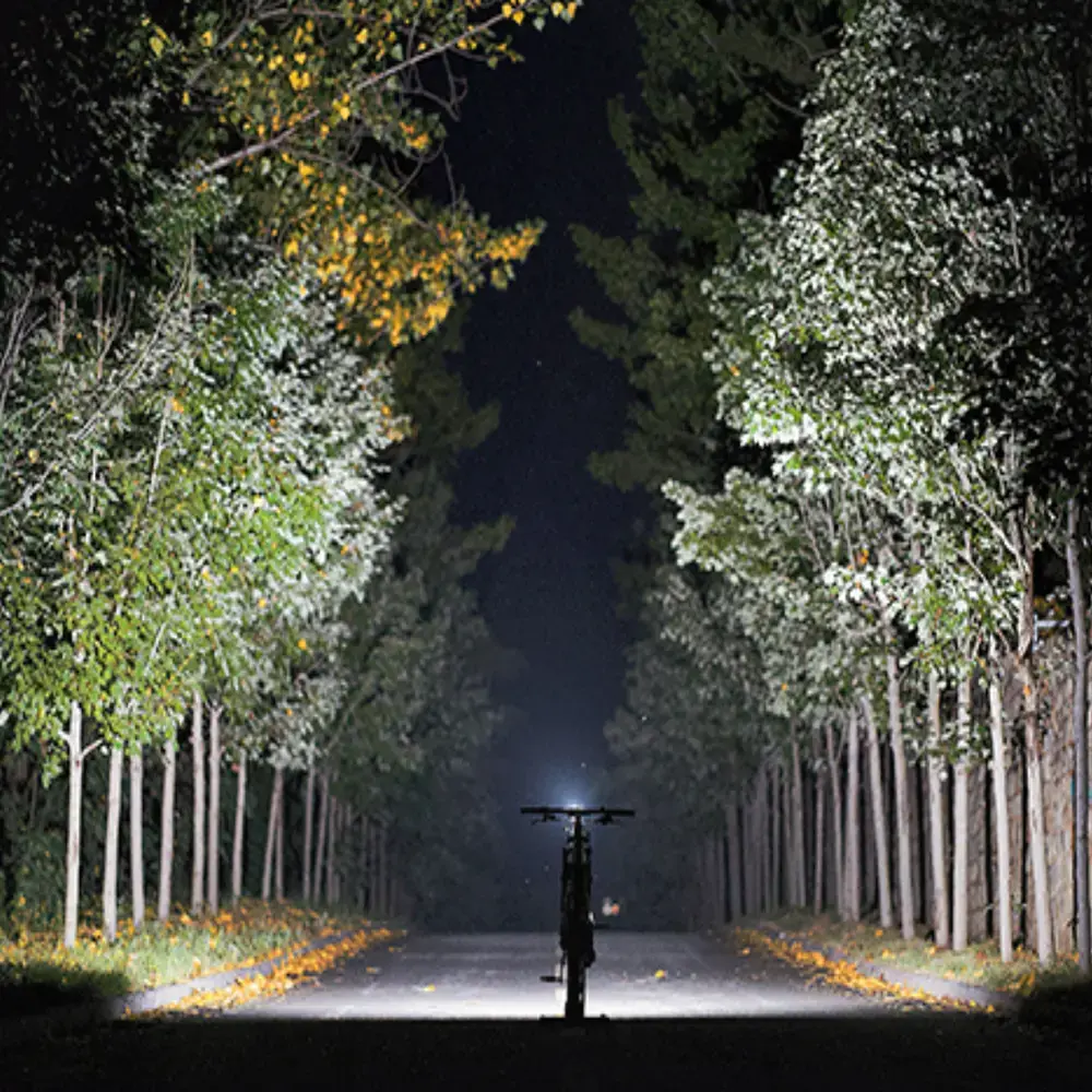 - Donkere omgeving: gebruik in echte donkere omgeving, zoals in bosrijk gebied. Geschikt voor MTB’ers en gravelrijders.