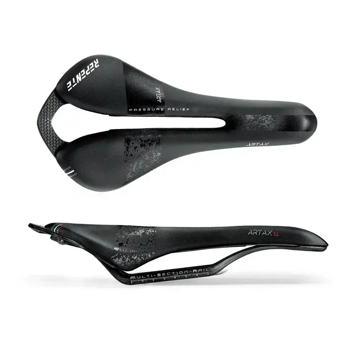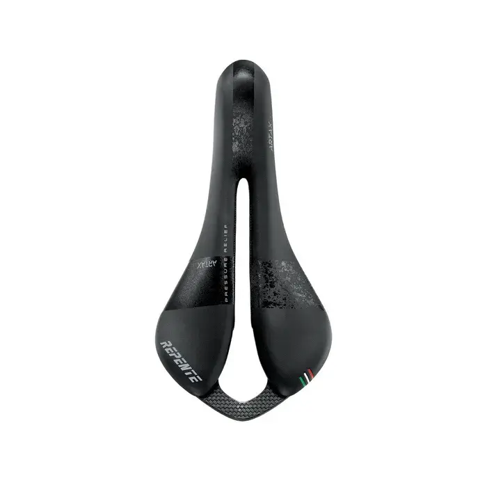 Het Repente Artax GL 132mm LCF Zadel met Carbon Rails is speciaal ontwikkeld voor gravel- en offroad-rijders die op zoek zijn naar ultiem comfort en ondersteuning. Dankzij de brede anatomische uitsparing en de ergonomische vormgeving wordt druk op gevoelige zones aanzienlijk verminderd, waardoor ook langere ritten comfortabel blijven. De schaal van Long Carbon Fibers biedt een perfecte balans tussen flexibiliteit en stijfheid, terwijl de carbon rails het gewicht laag houden zonder aan sterkte in te boeten. De licht gebogen neus voorkomt wrijving en biedt extra steun tijdens staand fietsen of in de sprintpositie.