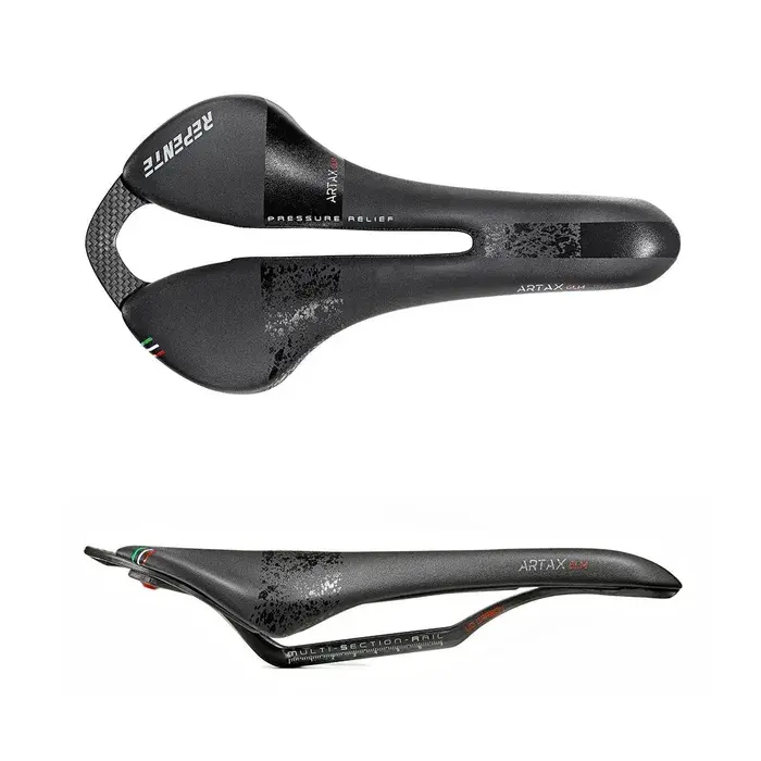Het Repente Artax GLM 142mm LCF Zadel met Carbon Rails is speciaal ontworpen voor gravelrijders en offroad-avonturiers die behoefte hebben aan extra ondersteuning en bewegingsvrijheid. Het bredere zitplatform zorgt voor meer stabiliteit zonder de bewegingsvrijheid van de benen te beperken. De diepe anatomische uitsparing vermindert effectief de druk op gevoelige zones, terwijl de schaal van Long Carbon Fibers optimale sterkte en duurzaamheid biedt. Met zijn lage gewicht en robuuste carbon rails is dit zadel een uitstekende keuze voor intensieve gravelritten en lange tochten over gevarieerd terrein.