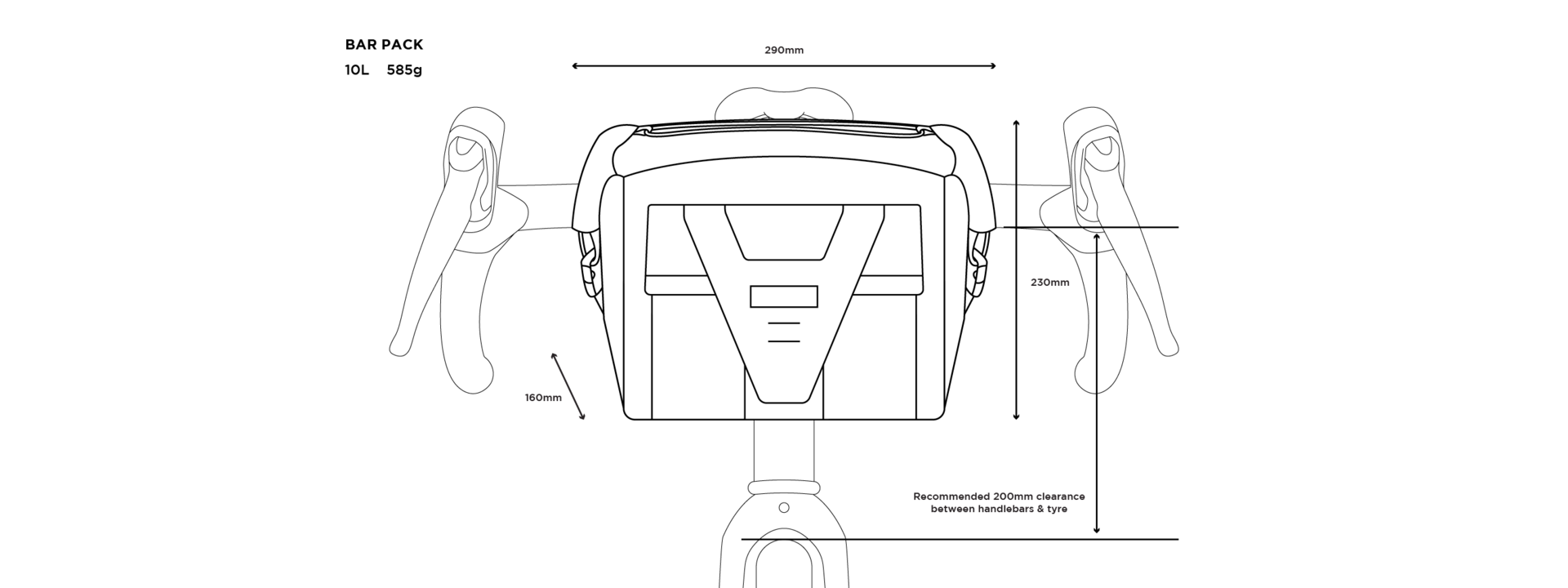 De volumineuze en veelzijdige Bar Pack stuurtas van Restrap is ideaal voor bikepacking trips in weer en wind. Twee volledig waterdichte compartimenten met oprolbare bovenkant bieden een capaciteit van 10 liter met een hypalon-sluiting, waarmee het voorcompartiment wordt vastgezet en een montagesleuf wordt geboden voor een opklikbaar voorlicht of extra omsnoering. Tussen de compartimenten is ruimte voor een D-lock in het daarvoor bedoelde holster. De interne versteviger en extra harde acherkant geven de tas extra stijfheid. Middels een MOLLE verstelbaar balhoofdbuisbevestiging wordt de stuurtas veilig vastgemaakt aan het stuur. De schuimafstandhouders en veerbelaste nokvergrendelingen zorgen voor een stabiele en betrouwbare bevestiging aan uw stuur. De tas is compacter te maken met het span- en gespsysteem. Door het compact maken voorkom je schommelen aan het stuur. Bovenop kun je accessoires die je voor het grijpen wilt hebben bevestigen. Onder de elastieken koorden zit het vertrouwd vast.
