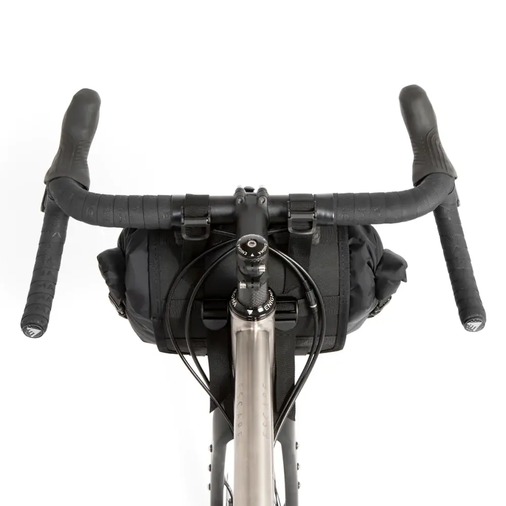Deze heb ik gekozen omdat ik een combinatie wilde van een harnas en een losse drybag. Je harnas bevestig je eenmaal aan je stuur en blijft daar zitten. De drybag klik je gewoon los en neem je mee de tent in. Dit systeem is iets zwaarder dan een zak die rechtstreeks aan het stuur bevestigd wordt maar dat wordt ruimschoots goedgemaakt door het gebruiksgemak. Kwaliteit is top, zoals al de andere spullen die ik van Restrap al had. De zak hangt stabiel, ook op ruig terrein. Wel een beetje opletten dat je het frame voldoende beschermd, ik had na twee dagen ondanks dikke tape op de balhoofdbuis toch redelijk wat schade door de remleiding die tussen zak en frame zit. Iets om op te letten bij het volgende gebruik. De extra accessory pouch is een leuke meevaller. Hier kan echt veel in en eens je het bevestigingssysteem doorhebt super handig in het gebruik. Wat voor mij beter kon is de sluiting van de zak. Als je hem gebruikt zoals ik (overdag blijft hij dicht en hij komt alleen 's avonds van de fiets omdat mijn slaapsysteem er in zit), is een sluiting aan beide zijden een beetje overkill. Je verliest hierdoor eigenlijk enkele centimeters nuttige ruimte die bij dropbar bikes sowieso al schaars is. Als ze er dan ook nog een "ventieltje" zouden opzetten om de overtollige lucht vrij te laten bij het sluiten (zoals bij mijn saddlebag van de "concurrentie") kreeg deze zeker 5 sterren.