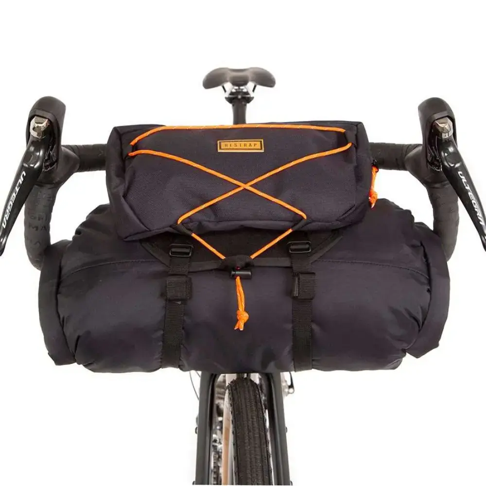 Deze Restrap Bar Stuurtas 17 Liter is perfect voor op lange bikepacking tochten. De tas is gemakkelijk aan je stuur te bevestigen. En is dankzij de straps geschikt voor ieder stuur. De hardshell constructie houdt het voedingstasje en de drybag perfect op hun plek. En is extreem duurzaam dankzij gebruik van nylon van militaire kwaliteit. De drybag is volledig waterdicht evenals het voedingstasje. Deze is bevestigd middels een magneet en is perfect bereikbaar tijdens het fietsen.