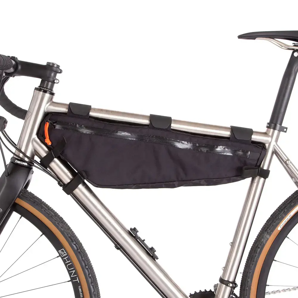 Deze Restrap Frametas is waterdicht en ideaal voor bikepacking tochten. De tas past op vrijwel ieder frame dankzij de straps bevestiging. De tas is gemaakt van hoogwaardige VX21 stof en voorzien van een waterdichte rits. Dit maakt de tas uitermate waterdicht. Ook bevat de tas een handig organiser waardoor zoeken naar je spullen verleden tijd is.