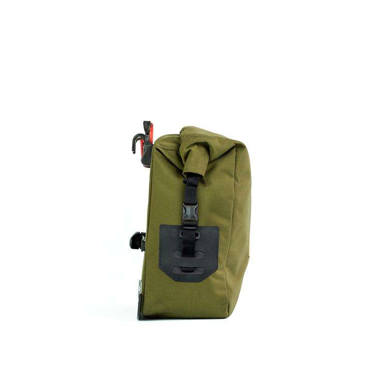 De slanke Pannier Smalle fietstas met roltop is ontworpen voor kracht, stabiliteit en uithoudingsvermogen. Perfect voor bikepacking door de combi van waterdichte materialen, inhoud en reflecterende details. De tas is uitgerust met zij-ontgrendelingsgespen die openen en sluiten makkelijk maken en zorgt dat de inhoud van je tas niet nat wordt of uit de tas kan. De tas bevat een volledig verstelbaar haaksysteem voor eenvoudige montage op 10-16 mm rails.