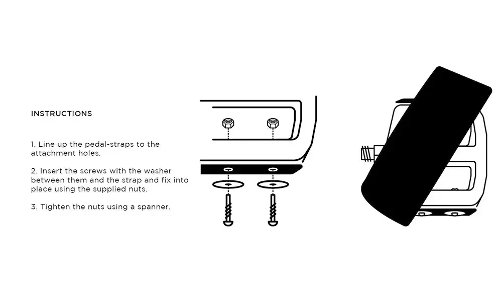 1. Lijn de pedaalriemen uit met de bevestigingsgaten