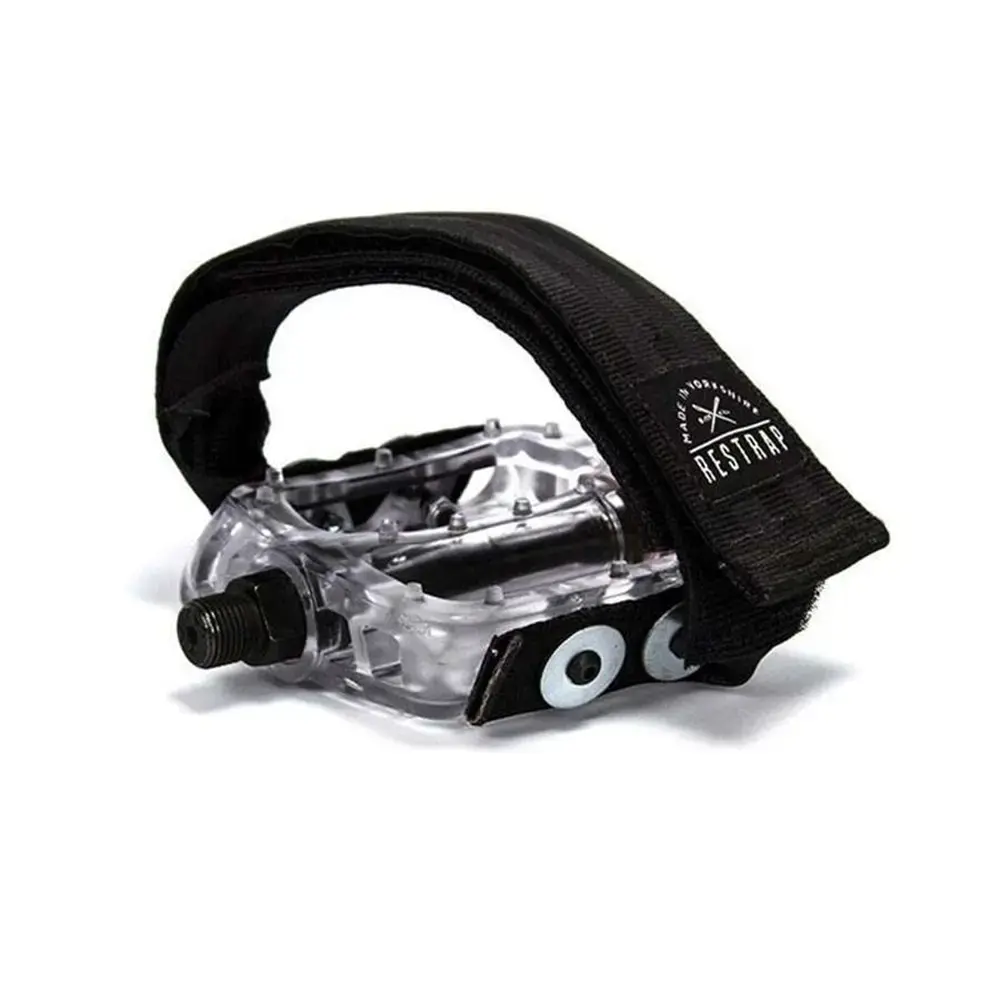 Met de diagonale Pedal Straps van Restrap zet je je voeten stevig vast op de pedalen, ideaal voor fietstochten zonder klikpedalen in heuvelachtig gebied. De straps zijn krachtig en comfortabel en gemaakt van stevig nylon. De versterkte montagegaten met oogjes en vernikkelde fittingen zorgen voor een ongekende sterkte. Het unieke 3-laags klittenbandsysteem met twist-tension ontwerp houdt je voet stevig aan het pedaal gedrukt en zorgt dat je met kracht trekken. Deze banden kunnen met elk schoeisel worden gebruikt.