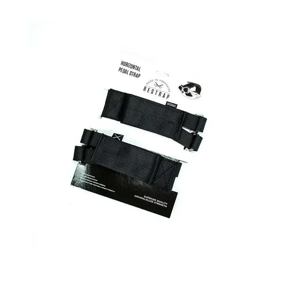 Met de horizontale Pedal Straps van Restrap zet je je voeten stevig vast op de pedalen, ideaal voor fietstochten zonder klikpedalen in heuvelachtig gebied. De straps zijn krachtig en comfortabel en gemaakt van stevig nylon. Ze zijn volledig verstelbaar. Het unieke 3-laags klittenbandsysteem houdt je voet stevig aan het pedaal gedrukt en zorgt dat je met kracht trekken. Deze banden kunnen met elk schoeisel worden gebruikt.