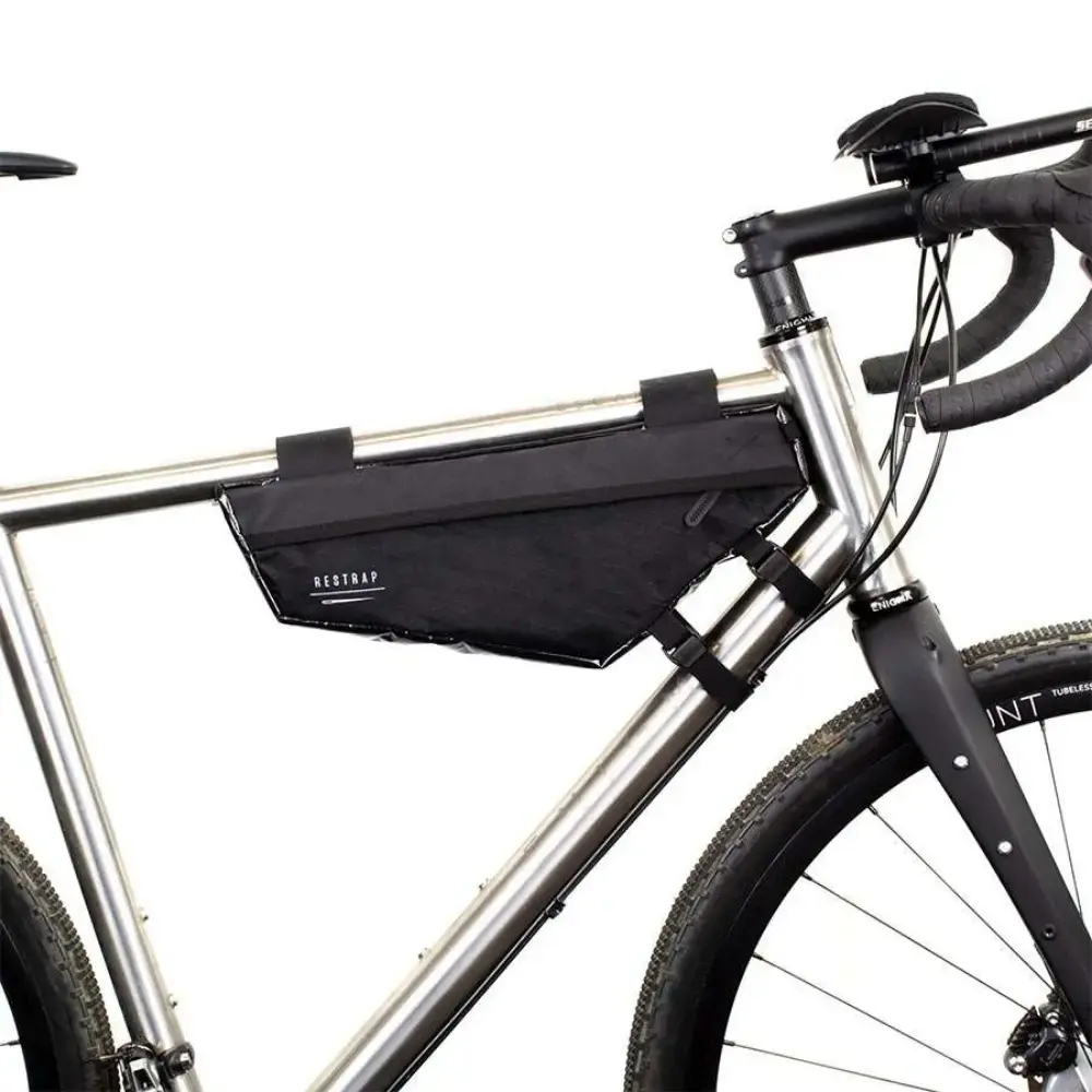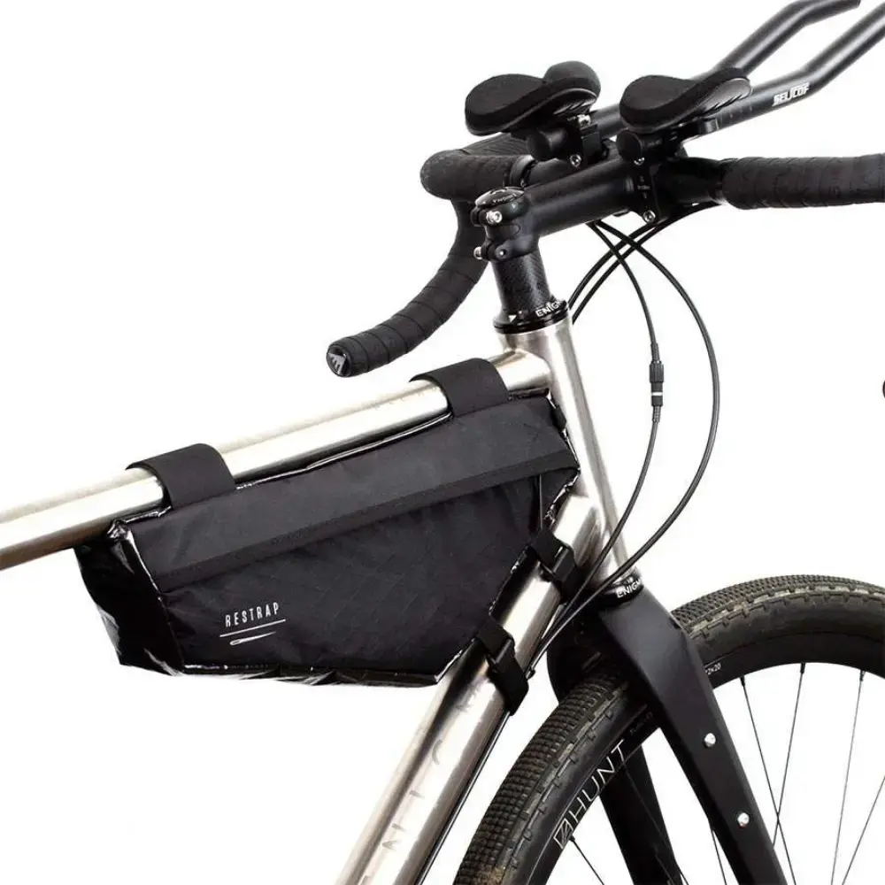 Deze Restrap Race Frametas is waterdicht en ideaal voor bikepacking tochten. De tas is speciaal ontworpen voor het gebruik op de racefiets. De tas is gemaakt van hoogwaardige VX21 stof en voorzien van een rits met cover. Dit maakt de tas uitermate waterdicht. Ook bevat de tas aan beide kanten een rits, waardoor je altijd gemakkelijk bij je spullen kunt.