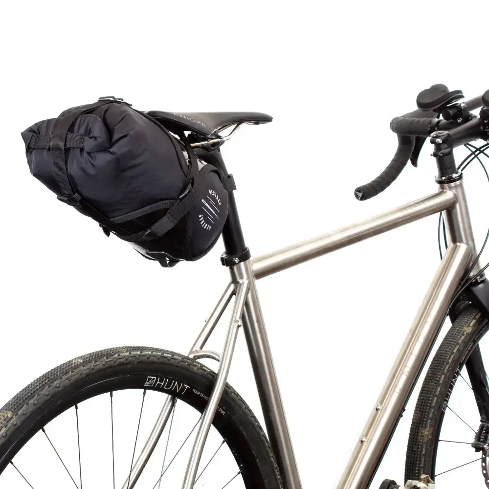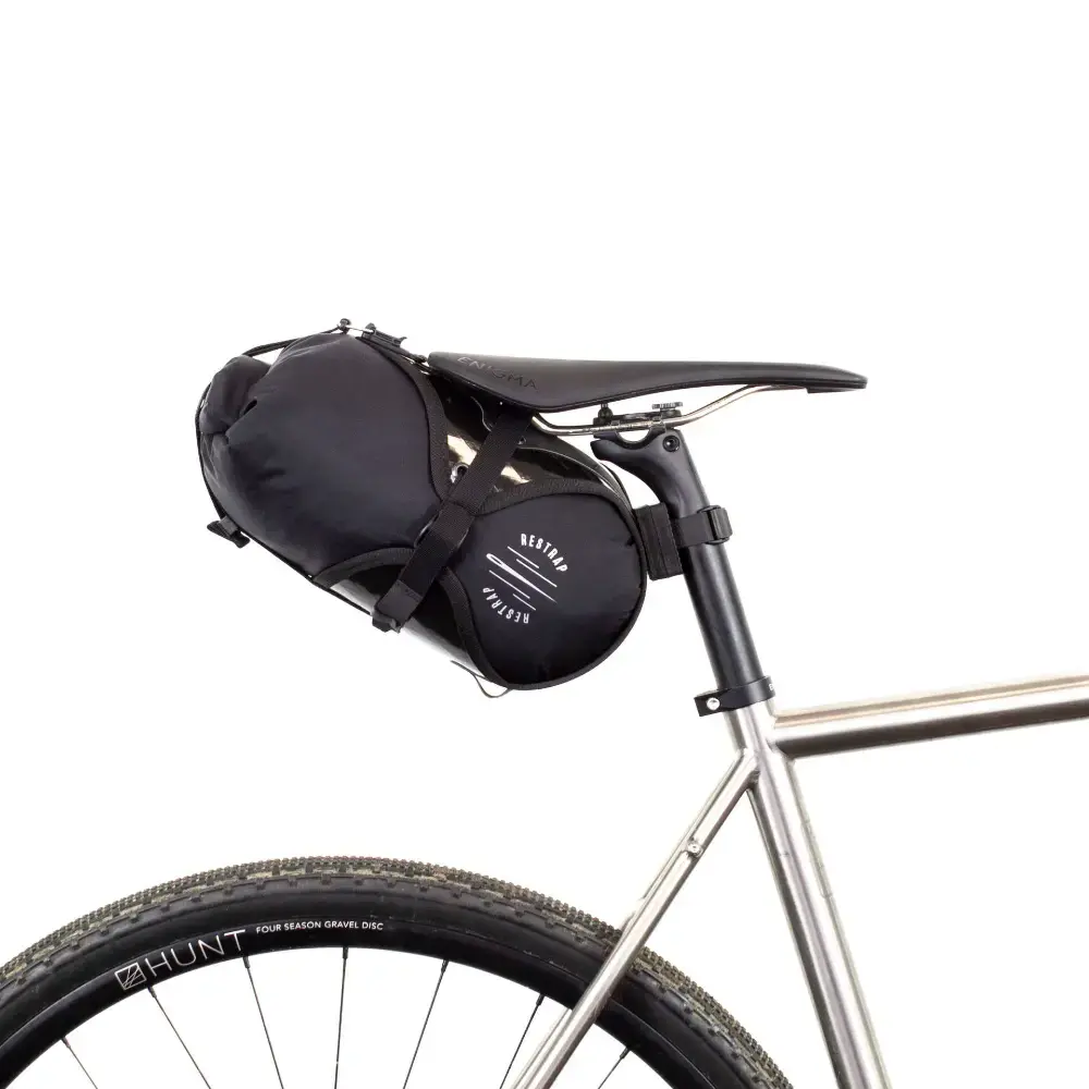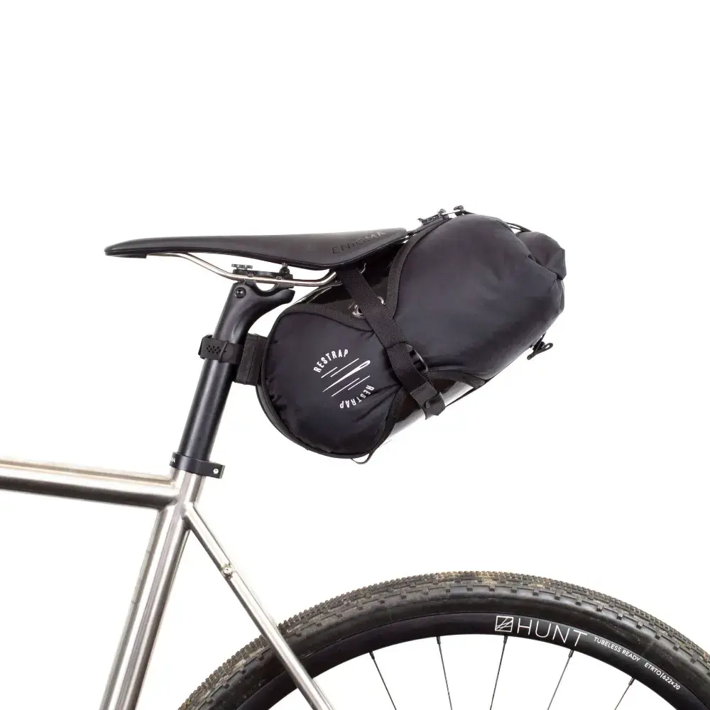 Deze Restrap Race Zadeltas 7 Liter is een forse zadeltas ideaal voor bikepacking. De tas is speciaal ontworpen voor op de racefiets. In de tas kun je gemakkelijk een extra jack, multitool of wat extra voeding in meenemen. De tas is gemaakt van hoogwaardig 1000D nylon en voorzien van een rolsluiting en getapete naden. Hierdoor maken regen en opspattend water geen kans. De hardshell constructie zorgt ervoor dat je altijd een strak pakket onder je zadel hebt hangen. Ook houdt deze in combinatie met foam blokken de tas perfect onder het zadel. De magnetische sluiting is gemakkelijk te openen, zelfs met handschoenen. Dankzij de bevestiging met straps past deze tas onder vrijwel ieder zadel. Door de reflecterende details ben ook tijdens het rijden in het donker, prima zichtbaar.