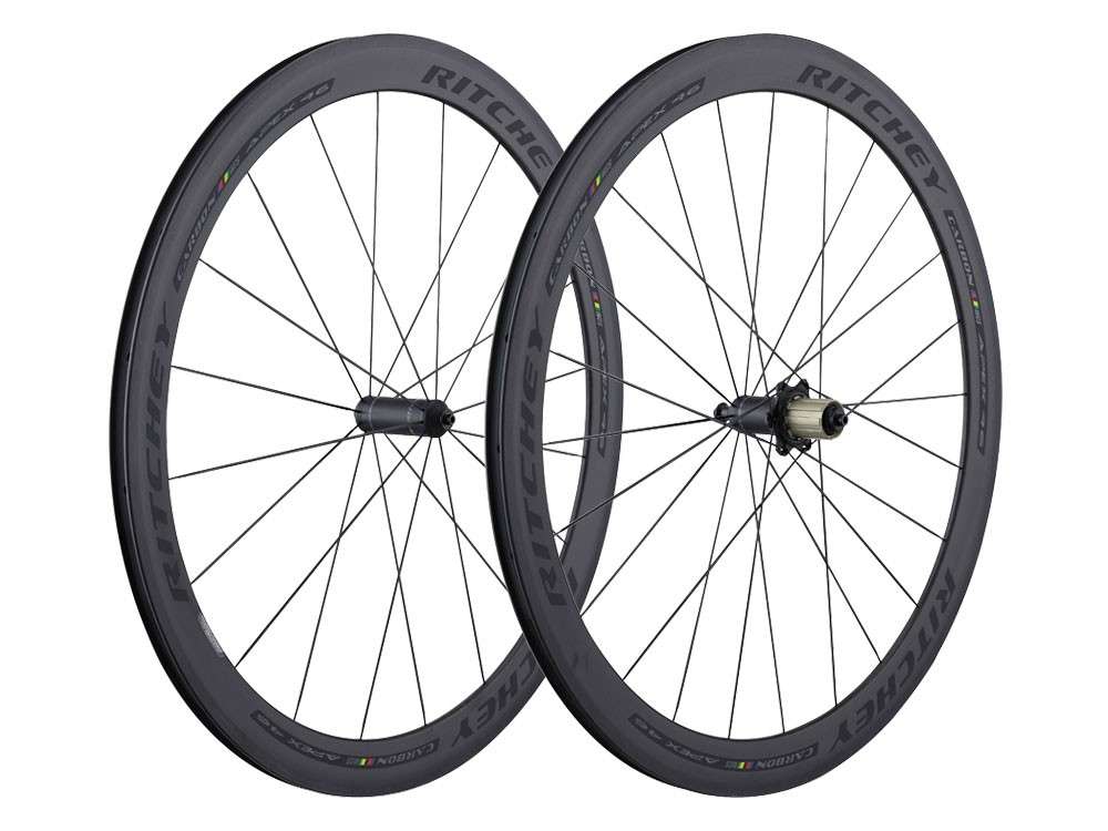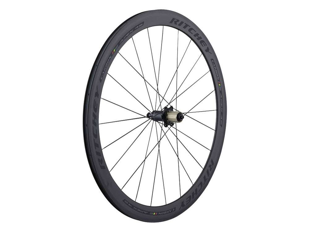 De Ritchey Apex II Race carbon wielset is een wielset dat komt uit de WCS lijn van ritchey. De WCS lijn staat voor de gouden standaard van zeer lichte en sterke producten met een geavanceerd ontwerp. Elke Apex II is handgemaakt door een gekwalificeerde Ritchey wiel technicus. De wielen de zijn radiaal gespaakt met 20 spaken voor en 24 achter. De Apex II beschikt over de gepatenteerde super ligte Phantom Flange naven (70g voor 207g achter) heeft hoge kwaliteit lagers en een gereedschap vrij ontwerp. Het gereedschapsvrije ontwerp maakt het mogelijk om de naven gemakkelijk uit elkaar te halen zonder dat hier gereedschap voor nodig is. Wat het makkelijk maakt om spaken te vervangen, maar ook om de wielen makkelijk in te pakken en mee te nemen voor een weekend tripje.