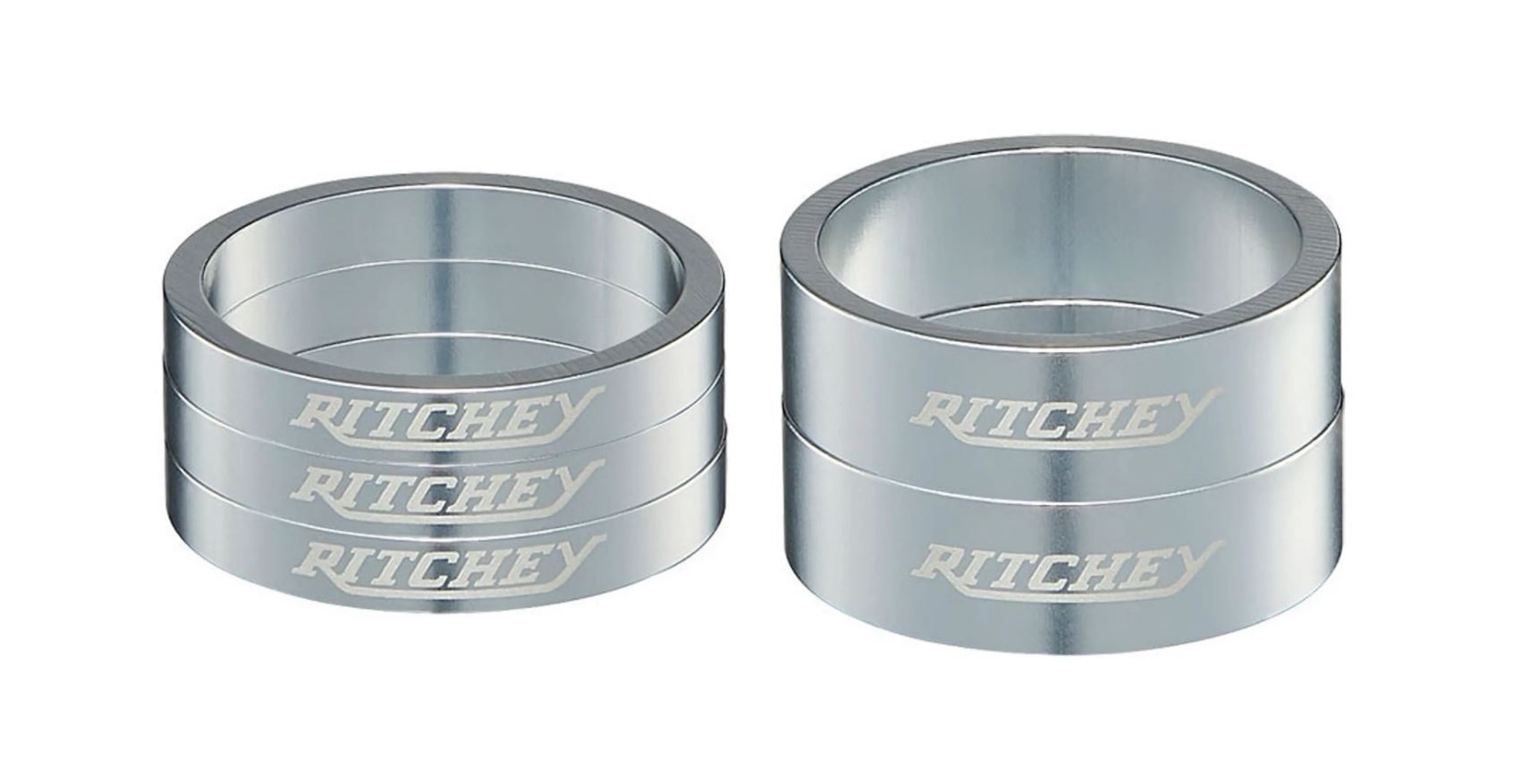 Deze spacerset van Ritchey bestaat uit 2 verschillend maten. Er worden 3 spacers van 5mm en 2 spacers van 10mm meegeleverd. De set heeft een fraaie zilveren afwerking met een wit ritchey logo en past op vorkbuizen met een diameter van 1 1/8 inch.