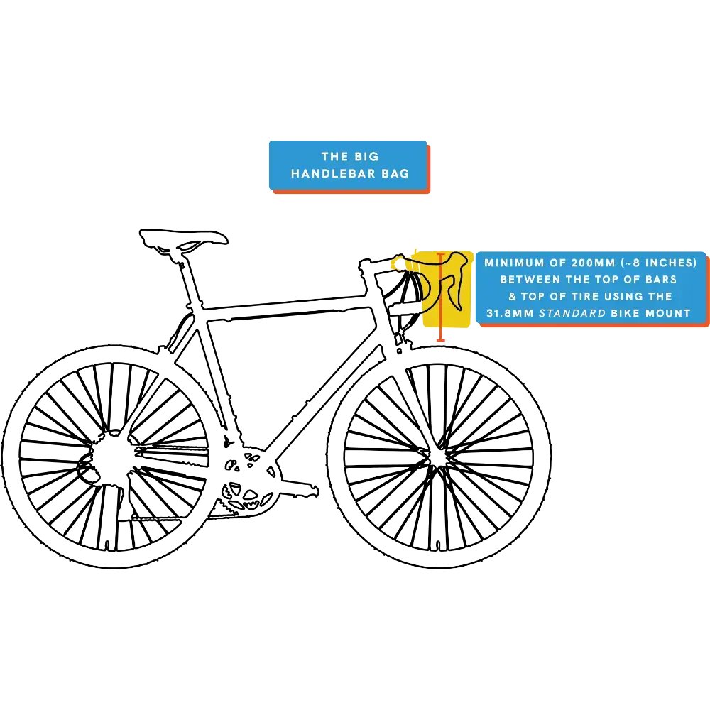 Let op: Voor de bevestiging van deze tas aan je stuur is een specifieke Bike Mount vereist (apart verkrijgbaar in 31.8mm, 31.8mm High of 35.0mm).