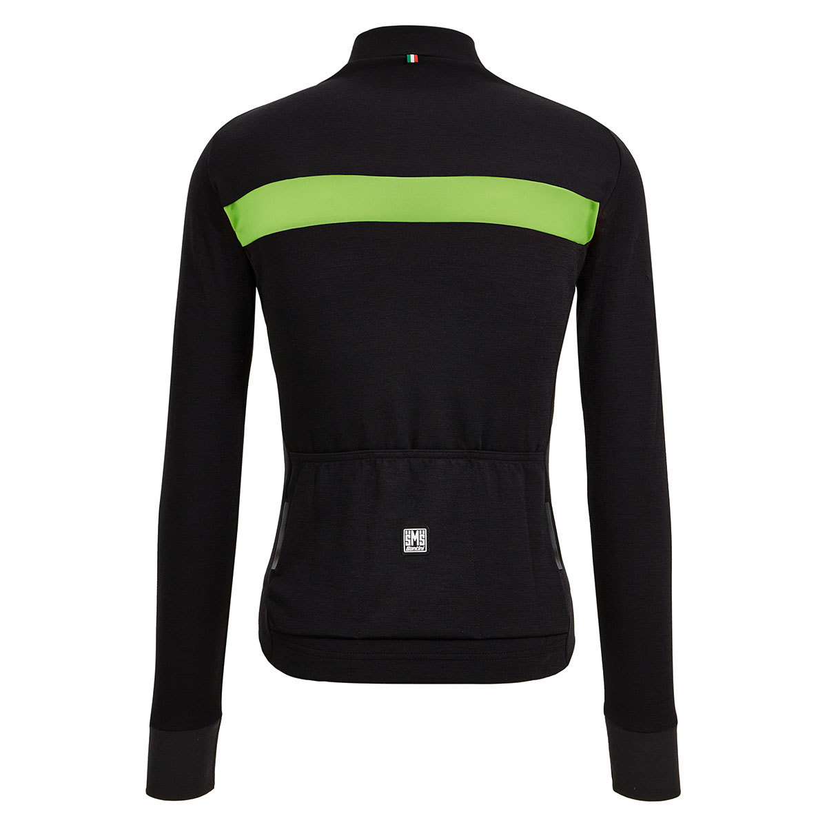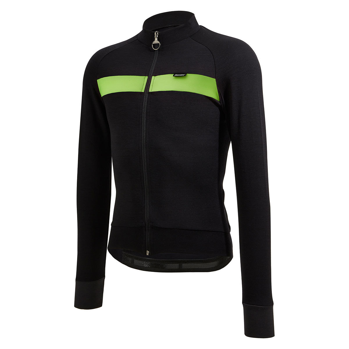 Dit fietsshirt met lange mouwen van Santini is ideaal voor de overgangsseizoenen. Het shirt is gemaakt van POLARTEC® Power Wool wat een mix is van Merino wol en polyamide. Het materiaal heeft thermoregulerende eigenschappen waarmee het je lichaamstemperatuur stabiel houdt. Als het echt koud wordt kan het shirt ook goed als tussenlaag gebruikt worden. De polsmanchetten sluiten nauw aan en de tailleband is voorzien van een siliconen gripper waardoor deze goed op zijn plek blijft. Een stijlvol ontwerp, kwalitatieve rits en reflecterende details maken dit shirt helemaal af!