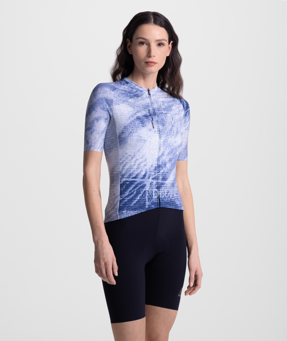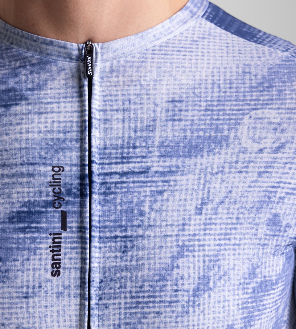 Het Santini Motion fietsshirt is een unisex shirt ontworpen om op te vallen met een combinatie van stijl, comfort en optimale bewegingsvrijheid. Het shirt is gemaakt met een slimme mix van technische materialen: de voor- en achterkant van Polartec Power Stretch vormen zich perfect naar je lichaam, terwijl de zij-inserts van Polartec Delta de vochtregulatie verbeteren en zorgen voor een snelle droging. Hierdoor blijf je zelfs tijdens de meest intensieve inspanningen aangenaam koel. De raw-cut mouwen zorgen voor een strakke, aerodynamische pasvorm en de interne siliconen grippers in de zoom houden het shirt altijd perfect op zijn plaats.