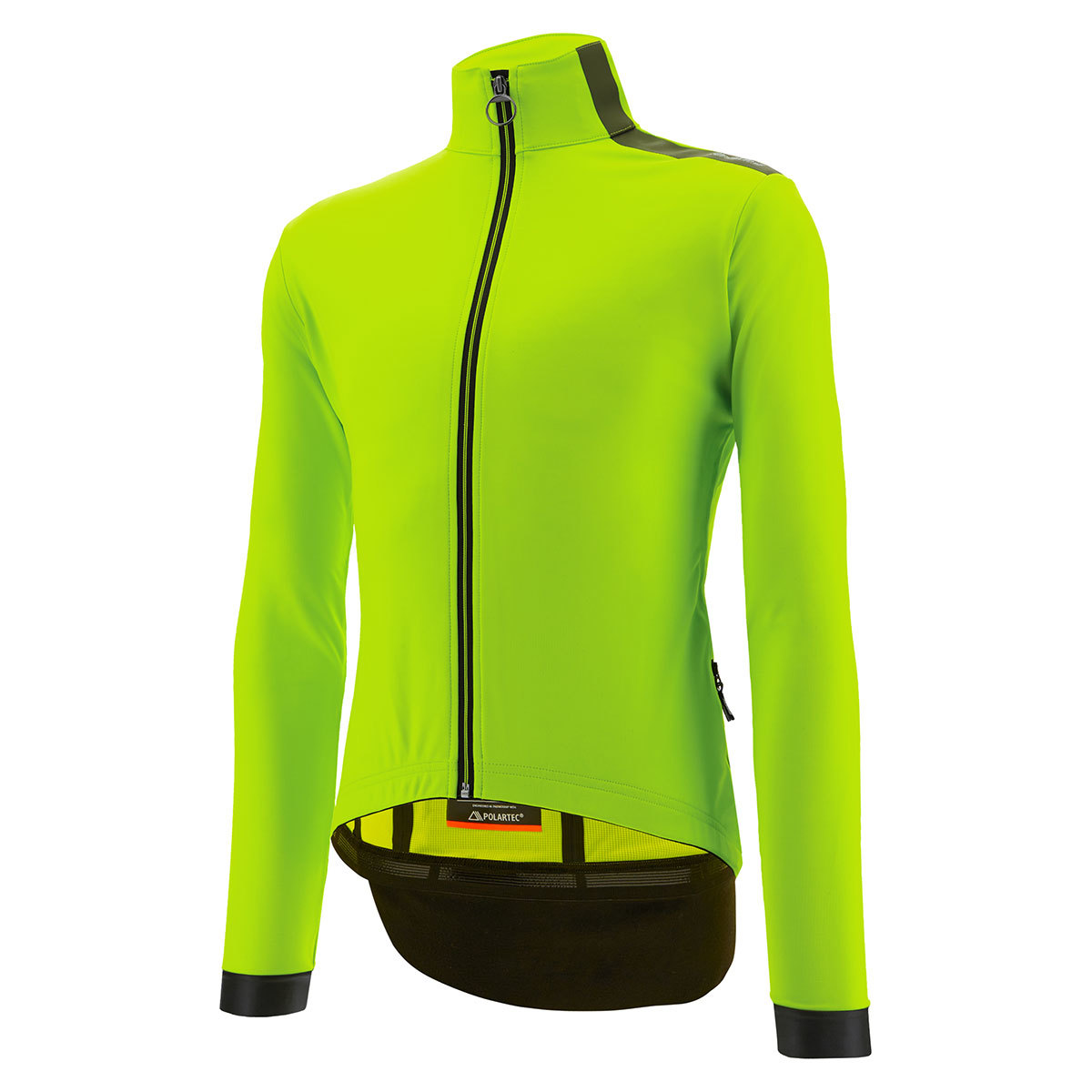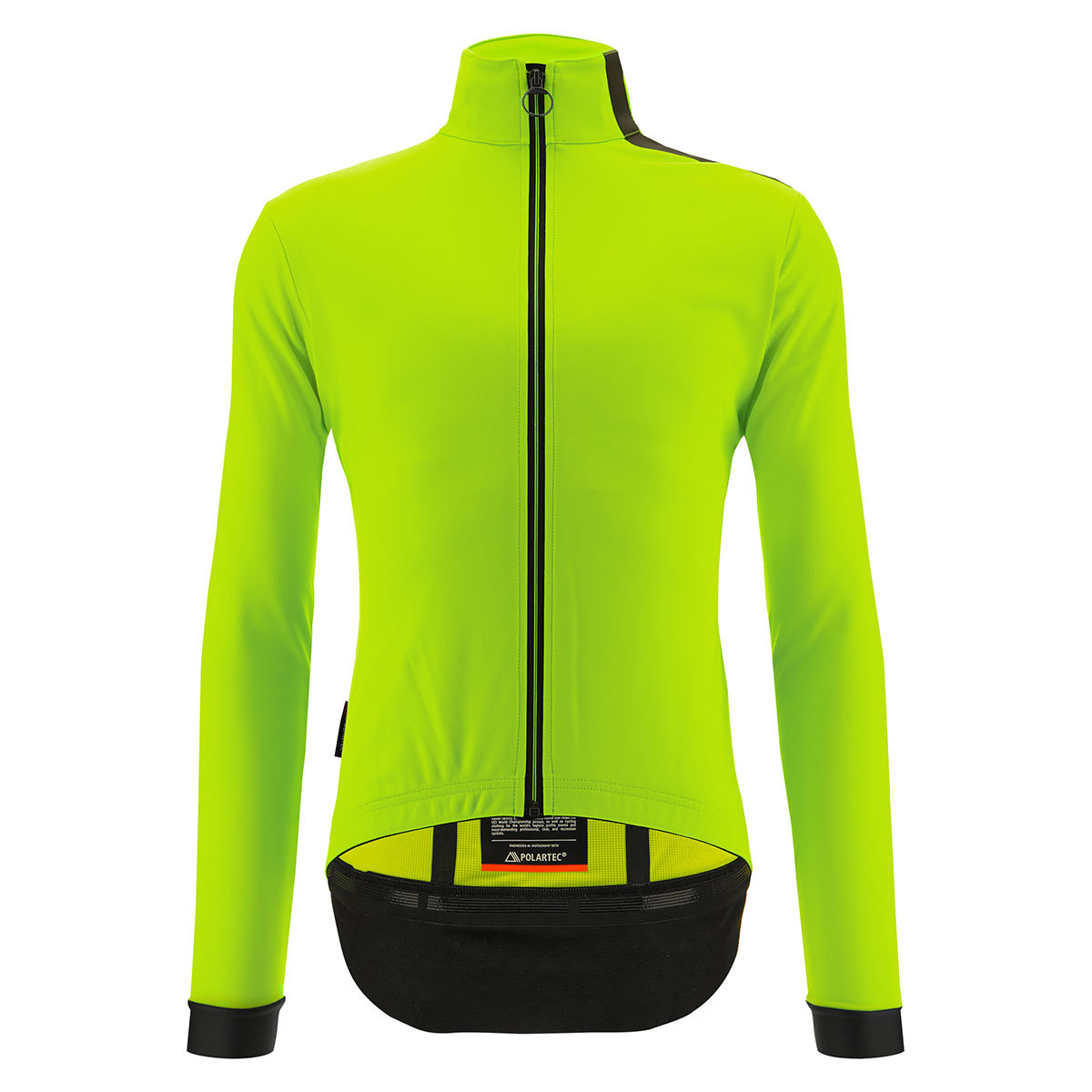 Het Santini Vega Multi Winter Hood Fietsjack is gemaakt om de hele winter in door te kunnen fietsen. Het houdt je lichaam op een comfortabele temperatuur dankzij het hoog ademende vermogen. Dat dankt het jack aan het POLARTEC Powershield Pro materiaal in combinatie met de Super Roubaix stof aan de binnenzijde. Deze zorgen samen ook voor een goede bescherming tegen regen (waterkolom 5000mm). De naden zijn ‘Thermowelded’ en laten daardoor ook geen water door. Ook de rits op de voorzijde is waterdicht. Op de achterzijde zijn drie insteekzakken aangebracht en daarop een waterdicht zakje met ritssluiting. Enkele reflecterende elementen zorgen ervoor dat je beter zichtbaar bent in het verkeer. De innovatieve waterdichte capuchon kan worden opgeborgen in de kraag.