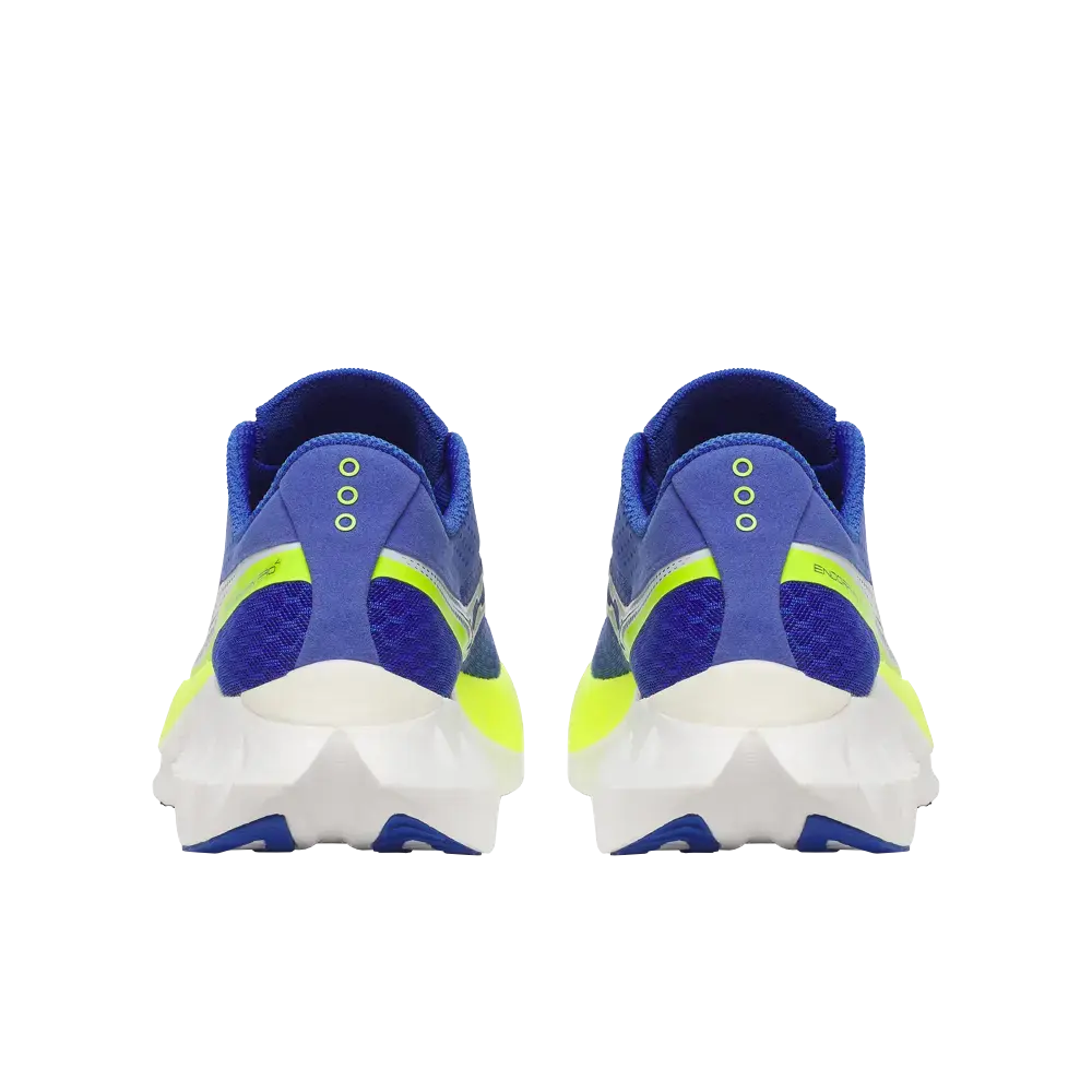 De Saucony Endorphin Pro 4 Hardloopschoenen gaan jou helpen een PR neer te zetten tijdens je volgende wedstrijd. Of het nu om een 5km of hele marathon gaat, met deze schoenen kun je snelheid maken. Zoals iedere high-end wedstrijdschoen is er een carbon plaat in de zool aangebracht, die zorgt dat je naar voren wordt gestuwd, voor extra snelheid. De SPEEDROLL-technologie helpt bij een optimale afwikkeling van de voet voor nog meer voortstuwing en snelheid. Het PWRRUN PB en HG schuim om die plaat heen geeft superveel demping, waardoor je ook nog eens veel comfort ervaart. De sokvoering sluit mooi aan en is zo dun mogelijk gemaakt. De schoen voldoet precies aan de World Athletics-richtlijnen.