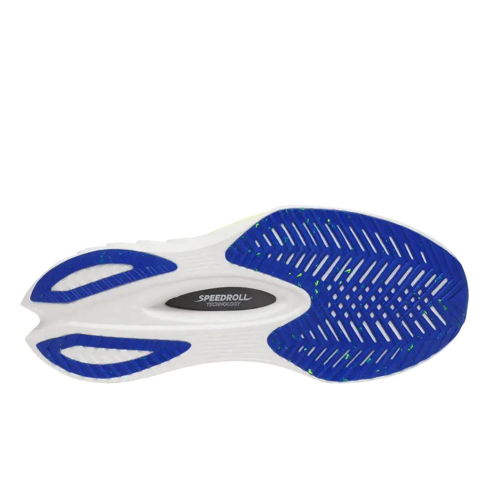 Een ronding in de zool bij de voorvoet in combinatie met een geometrische slijtzool en een responsieve Nylon plaat. SPEEDROLL zorgt tijdens de afwikkeling van je voet voor een ultieme grip. Daardoor krijg je het gevoel dat je vooruit gestuwd wordt.