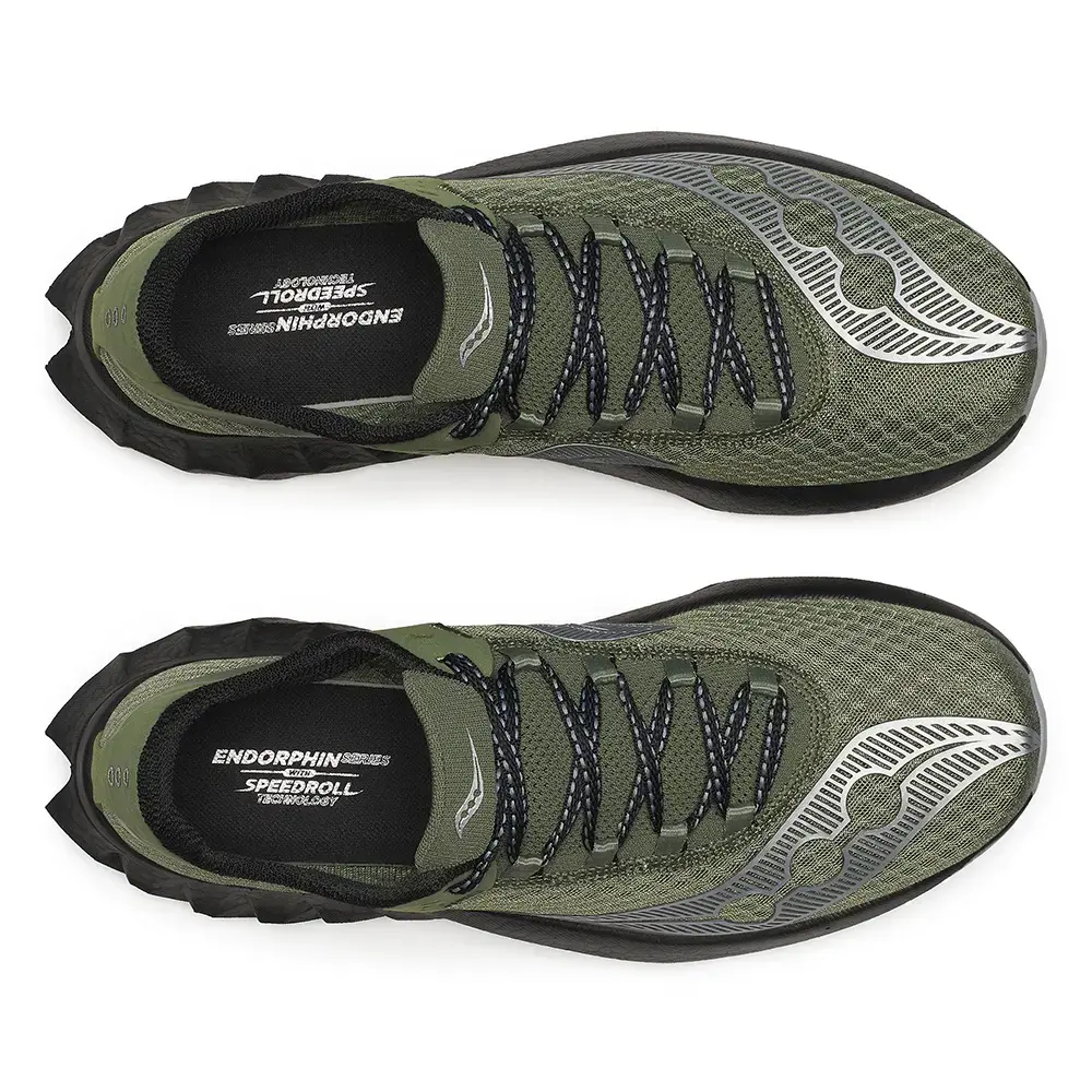 De Saucony Endorphin Pro 4 Hardloopschoenen gaan jou helpen een PR neer te zetten tijdens je volgende wedstrijd. Of het nu om een 5km of hele marathon gaat, met deze schoenen kun je snelheid maken. Zoals iedere high-end wedstrijdschoen is er een carbon plaat in de zool aangebracht, die zorgt dat je naar voren wordt gestuwd, voor extra snelheid. De SPEEDROLL-technologie helpt bij een optimale afwikkeling van de voet voor nog meer voortstuwing en snelheid. Het PWRRUN PB en HG schuim om die plaat heen geeft superveel demping, waardoor je ook nog eens veel comfort ervaart. De sokvoering sluit mooi aan en is zo dun mogelijk gemaakt. De schoen voldoet precies aan de World Athletics-richtlijnen.