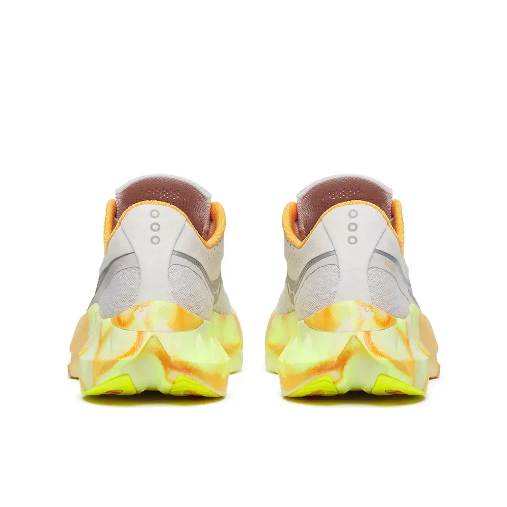 De Saucony Endorphin Pro 4 Hardloopschoenen gaan jou helpen een PR neer te zetten tijdens je volgende wedstrijd. Of het nu om een 5km of hele marathon gaat, met deze schoenen kun je snelheid maken. Zoals iedere high-end wedstrijdschoen is er een carbon plaat in de zool aangebracht, die zorgt dat je naar voren wordt gestuwd, voor extra snelheid. De SPEEDROLL-technologie helpt bij een optimale afwikkeling van de voet voor nog meer voortstuwing en snelheid. Het PWRRUN PB en HG schuim om die plaat heen geeft superveel demping, waardoor je ook nog eens veel comfort ervaart. De sokvoering sluit mooi aan en is zo dun mogelijk gemaakt. De schoen voldoet precies aan de World Athletics-richtlijnen.
