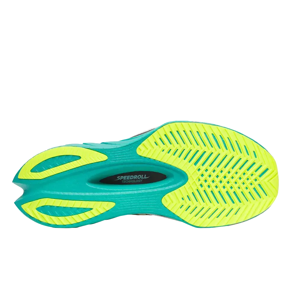 Een ronding in de zool bij de voorvoet in combinatie met een geometrische slijtzool en een responsieve Nylon plaat. SPEEDROLL zorgt tijdens de afwikkeling van je voet voor een ultieme grip. Daardoor krijg je het gevoel dat je vooruit gestuwd wordt.