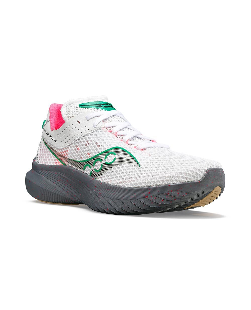 Met de Saucony Kinvara 14 Hardloopschoenen breek je PR’s! Deze lichtgewicht, neutrale hardloopschoenen zijn ideaal voor snelle tijden. De flexibele zool zorgt voor een snelle overgang van landing naar afzet en de PWRRUN-demping zorgt voor comfort. Dankzij de FORMFIT-technologie sluiten de schoenen perfect aan om je voeten. Hierdoor zitten je voeten als het ware opgesloten in de schoenen, wat fijn is tijdens snelle runs! Ten opzichte van zijn voorganger is de Kinvara 14 voorzien van een 3mm dikkere zool voor extra demping. Daarnaast voelt de Kinvara lichter aan dan ooit!