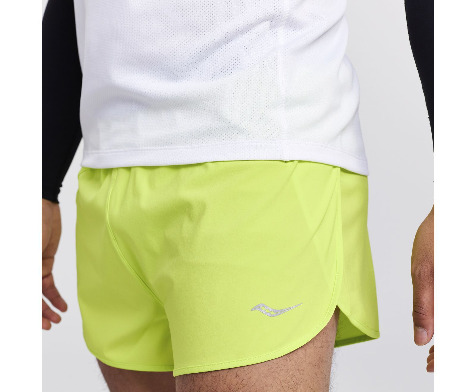 Stel je vraag over de Saucony Outpace 2.5 Inch Split Hardloopbroek Kort Lime Groen Heren.