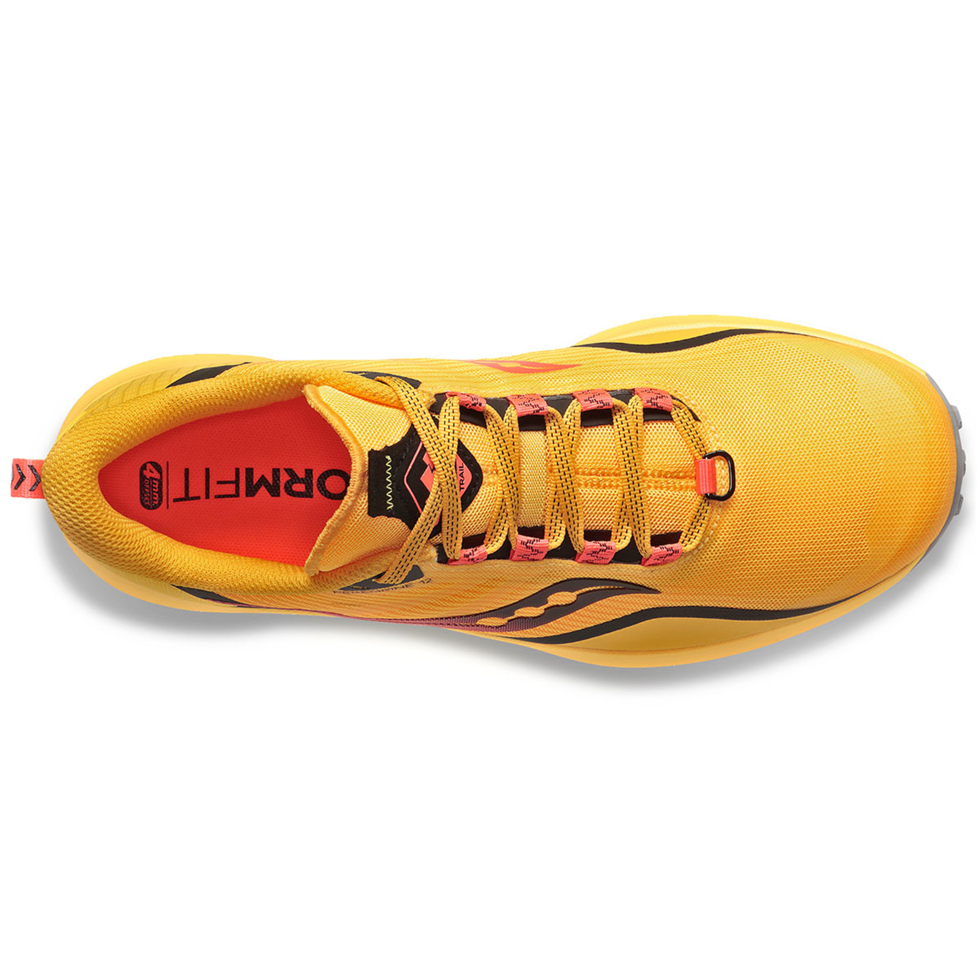 De Saucony Peregrine 12 Trail Hardloopschoenen zijn geschikt voor traillopers met een neutrale voetafwikkeling. De schoenen bieden zeer goede grip op veel verschillende terreinen dankzij de PWRTRAC buitenzool. Bovendien zorgt de PWRRUN demping voor optimale responsiviteit wanneer je bergop loopt, maar biedt tegelijkertijd ook bescherming en stevigheid wanneer je bergaf loopt. In deze nieuwe 12-versie is de zool verstevigd met een Rock Plate om de onderkant van je voeten beter te beschermen. Dankzij de FORMFIT technologie sluiten de schoenen perfect aan om je voeten, voor een comfortabel gevoel.