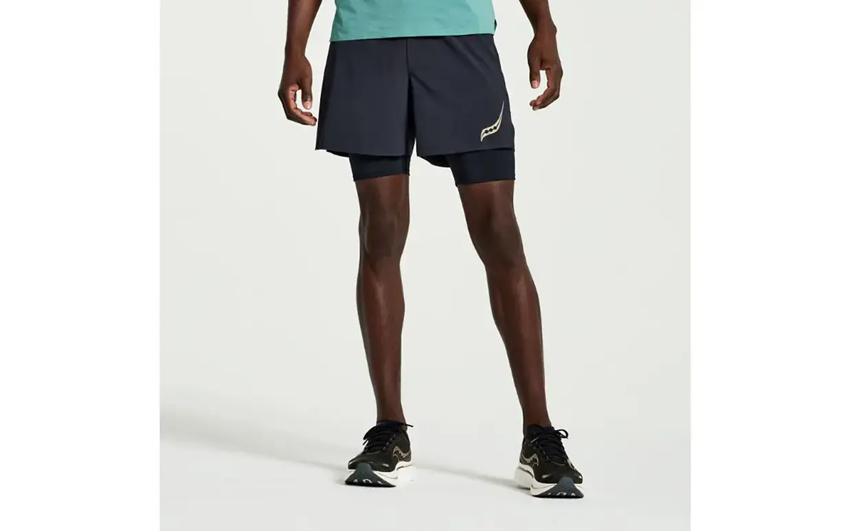 Specificaties Saucony Pinnacle 5 Inch 2 - IN - 1 Hardloopbroek Heren