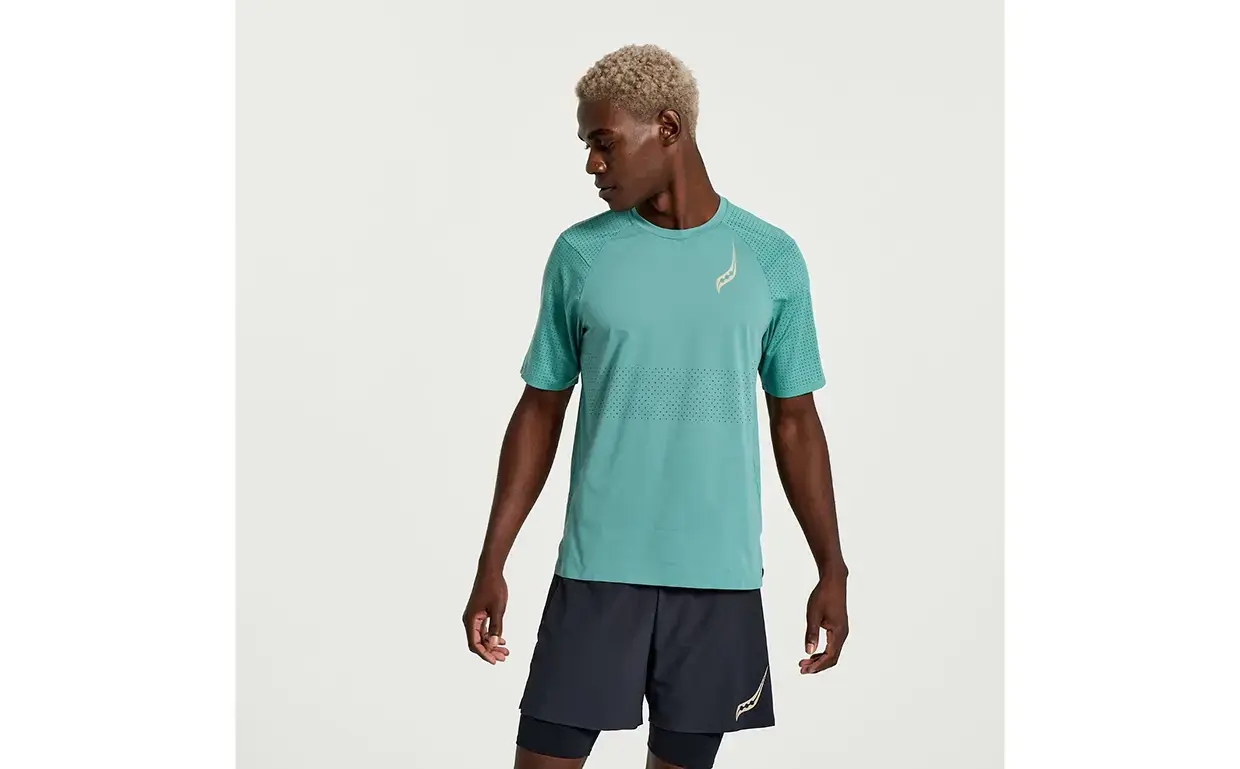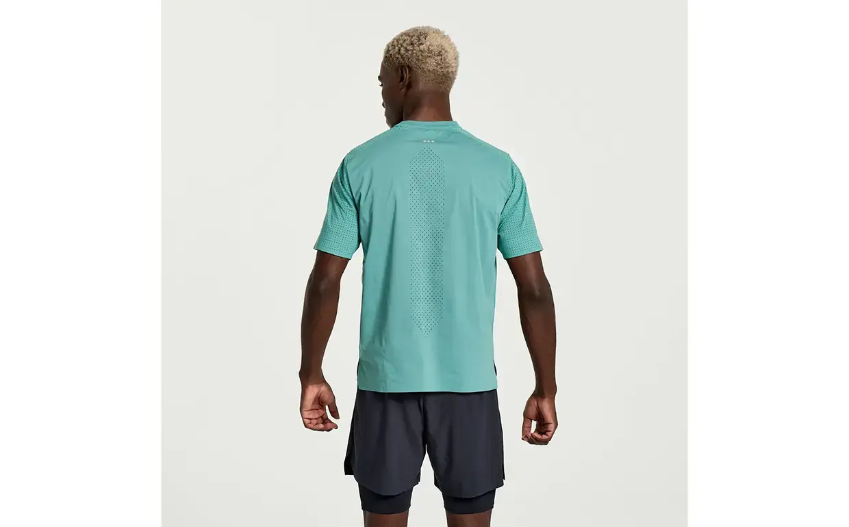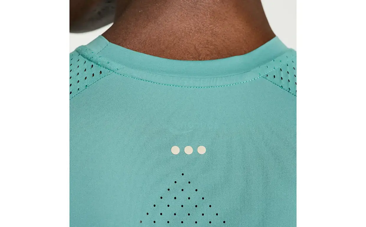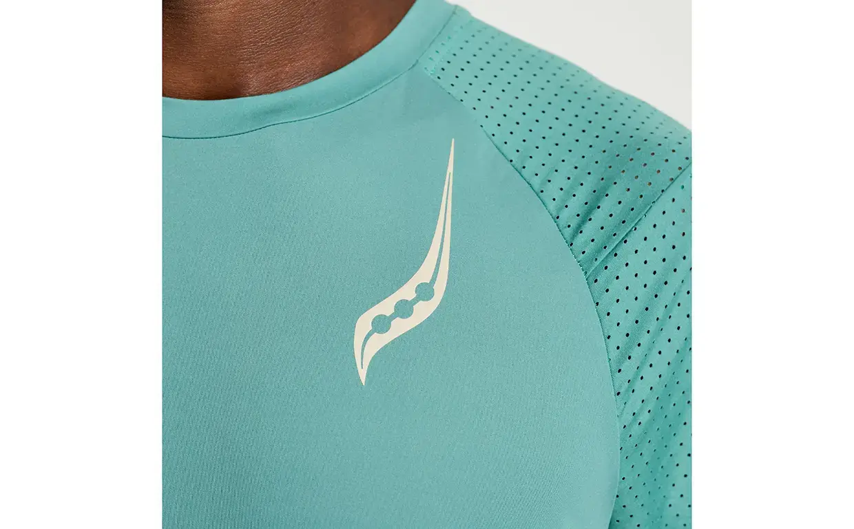 Het Saucony Pinnacle hardloopshirt is het shirt wat je nodig hebt op warmere dagen. Het materiaal is gemaakt om niet op de huid te plakken, waardoor het erg comfortabel aanvoelt. De laser-geperforeerde panelen op het shirt zorgen voor een enorm hoog ademend vermogen, zodat je lichaamstemperatuur op peil blijft. Hierdoor heeft het shirt een ventilerende en vochtregulerende werking. De ruimere pasvorm draagt bij aan het draagcomfort.