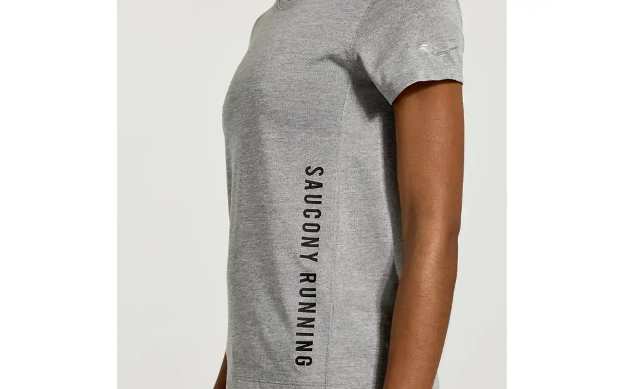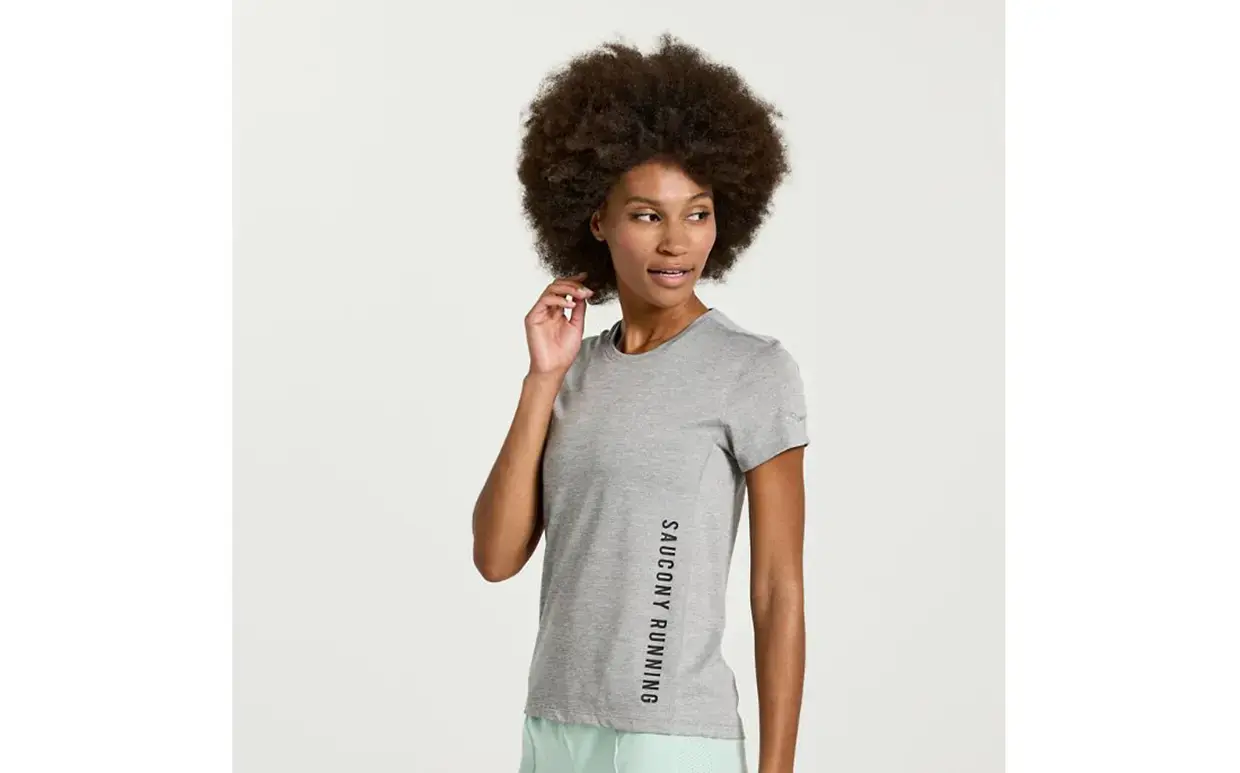 Saucony Stopwatch Graphic Hardloopshirt Korte Mouwen Lichtgrijs Dames