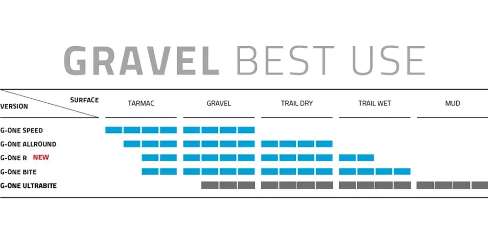 De Schwalbe G-One Ultrabite is een gravelband die op heel veel terreinen uitstekend tot zijn recht komt. Het compacte noppenprofiel op het loopvlak zorgt voor een lage rolweerstand op harde bospaden, maar ook op gravel en op asfalt. De robuuste zijnoppen geven je te allen tijde veel zekerheid in schuine bochten. Door de stabiele constructie met de meest geavanceerde Tubeless Easy Technologie zijn de offroad-prestaties van deze nieuwe G-One Ultrabite uitstekend!