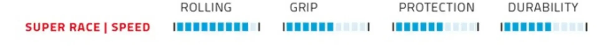 Super RaceDe Super Race technologie zorgt voor de snelst lopende band met de laagste rolweerstand. Daardoor levert hij een klein beetje in op grip en lekweerstand, maar zo minimaal dat je daar normaal geen last van zult hebben. Als je zoekt naar snelheid, kijk dan niet verder dan deze band!