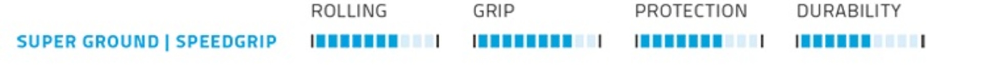 De Super Ground Speedgrip technologie zorgt voor een perfecte mix tussen grip, rolweerstand, lekbestendigheid en duurzaamheid. De rolweerstand ligt iets hoger dan de Super Ground Speed, maar biedt wel wat meer grip.