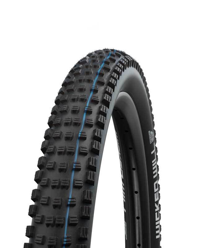 De nieuwe Wicked Will van Schwalbe is een band met vele gezichten. De band is ontwikkeld voor de discipline ‘Trail’ en daarmee vanzelfsprekend de juiste keuze voor snelle trails maar ook voor een ruige alpenrit. Wicked Will combineert een lichte loop en grip als geen ander en is wat meer geschikt voor de hardere droge ondergronden. Het centrale gedeelte van de band is voorzien van schuin geplaatste noppen waardoor deze snel blijft rollen. De overgang naar de zijkanten van de band verloopt vrij geleidelijk waardoor je maximale controle houdt en niet verrast wordt door grote veranderingen in grip. De schoudernoppen zijn stabiel en gripvast voor maximale ondersteuning in bochten of schuine kanten. Samenvattend is de Wicked Will een veelzijdige trailband die eventueel ook als ruigere XC band te gebruiken is. De Wicked Will is verkrijgbaar in verschillende rubbercompounds en karkassen, deze versie komt met Super Ground karkas en Speedgrip compound.