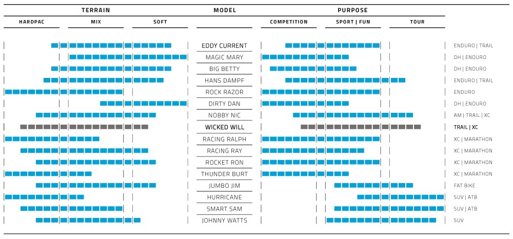 Was op zoek naar meer grip op de achterband, maar de Nobby Nic vond ik te overdreven. Uiteindelijk voor de Wicked Will gekozen, geen slippende bandjes meer tijdens de klim. En toch voldoende rolvermogen!