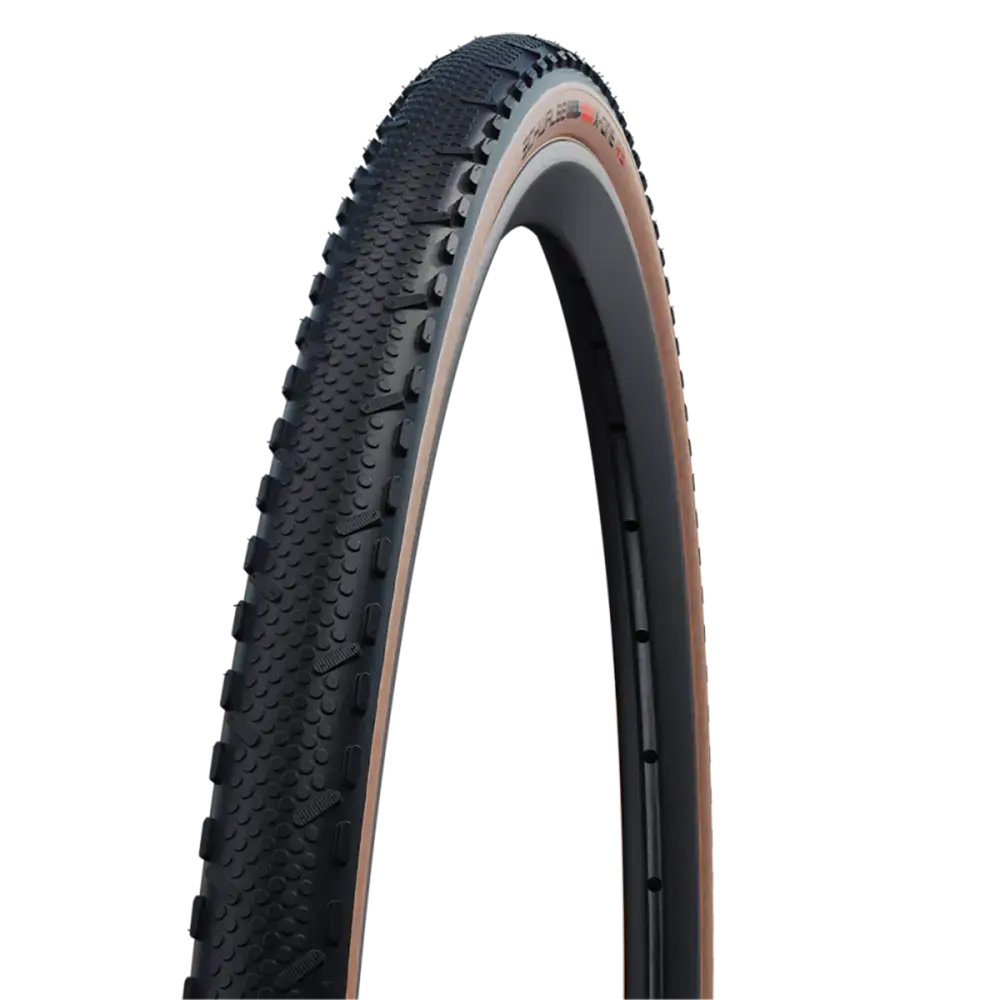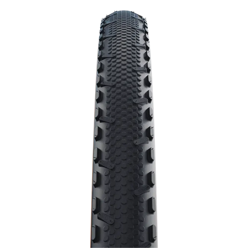 De Schwalbe X-One RS is de variant met de laagste rolweerstand binnen zijn X-One serie. Hij is dan ook zeer geschikt voor gravel- en cyclocrosstrainingen en wedstrijden onder alle omstandigheden. Deze Super Race vouwband is rap, heel rap. Het noppenprofiel is zo ontworpen dat het midden soepel loopt en de zijkanten grip bieden in bochten. De centrale noppenlijn zit dicht op elkaar en zorgt voor voldoende snelheid op de rechte stukken. De V-Guard is een goede bescherming tegen lekrijden. Een goede aankoop voor iedere fanatieke cyclocrosser!