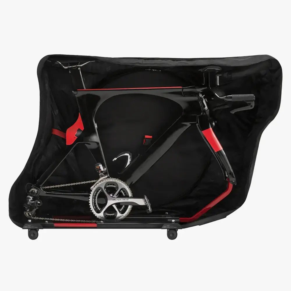 De Scicon Aerocomfort 3.0 TSA triathlon fietstas is ideaal om je triathlonfiets op een praktische wijze te vervoeren. Dankzij de sterke constructie kan de tas tegen een stootje en hoef je niet bang te zijn dat de onderdelen van je fiets beschadigd raken. De tas is compatible met steekassen en Quik Release assen. Dankzij de handige indeling met diverse compartimenten is de tas in slechts 5 minuten volledig in te pakken. Dankzij de wieltjes aan de onderzijde is zwoegen om de tas te vervoeren niet nodig, en is jouw racefiets op een praktische wijze te vervoeren. De fietstas is door meerdere professionele wielerteams en renners getest en zeker de investering waard als je jouw hoogwaardige triathlonfiets op een praktische en veilige wijze wilt vervoeren!