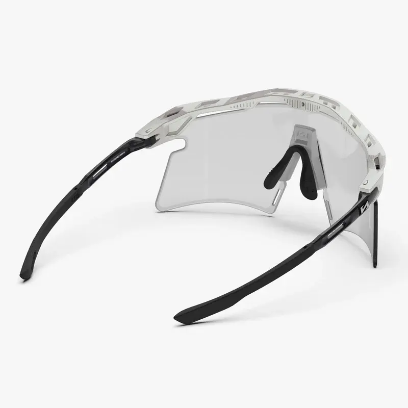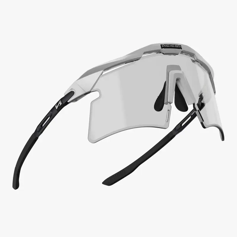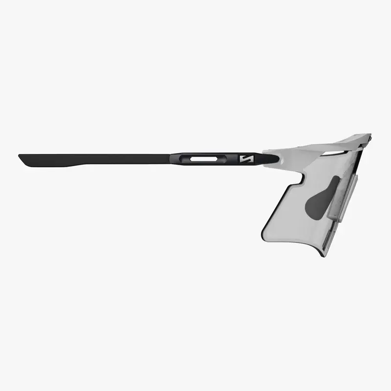 De Scicon Aeroshade 2.0 Titanium Photochromic is de ultieme keuze voor fietsers die rijden in wisselende omstandigheden. Sinds de overwinning in de Tour de France van 2020 door kampioenen als Tadej Pogačar, is de Aeroshade-lijn uitgegroeid tot een icoon in het peloton. Deze Titanium-versie gaat nog een stap verder met pootjes van medische kwaliteit titanium, wat zorgt voor een ongekende sterkte, flexibiliteit en een gewicht van slechts 40 gram. De innovatieve Photochromic lens past zich automatisch aan de lichtomstandigheden aan: hij wordt donkerder bij fel zonlicht en keert terug naar nagenoeg transparant in de schaduw of bij bewolking. Hierdoor geniet je van constant visueel comfort van de vroege ochtend tot de late avond, zonder ooit van lens te hoeven wisselen. Dankzij het Horizon Adapt™ systeem, de FlexiFit 2.0™ neuspads en de VortexFlow™ ventilatie ben je verzekerd van een perfecte pasvorm en een condensvrij zicht, hoe intensief je rit ook is.