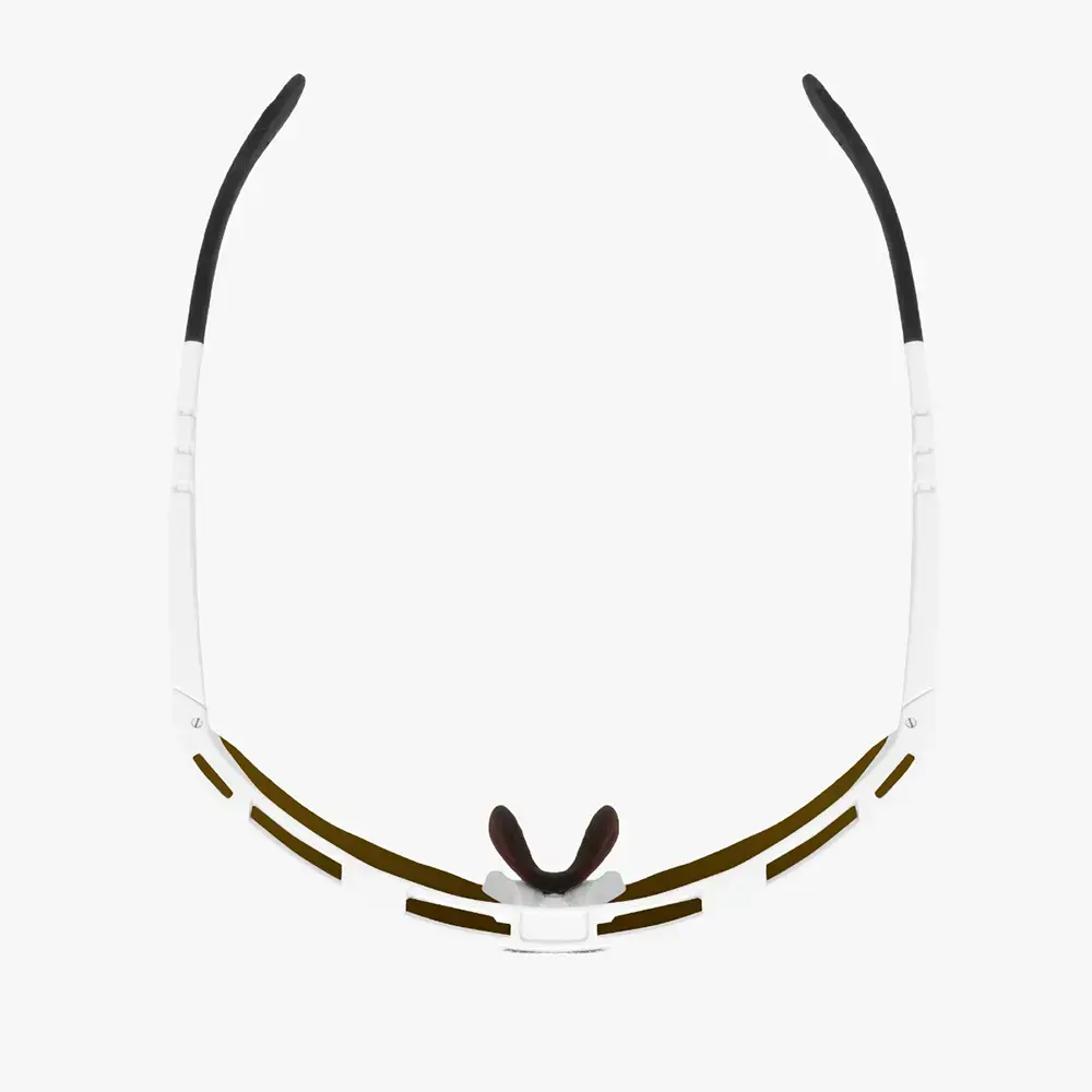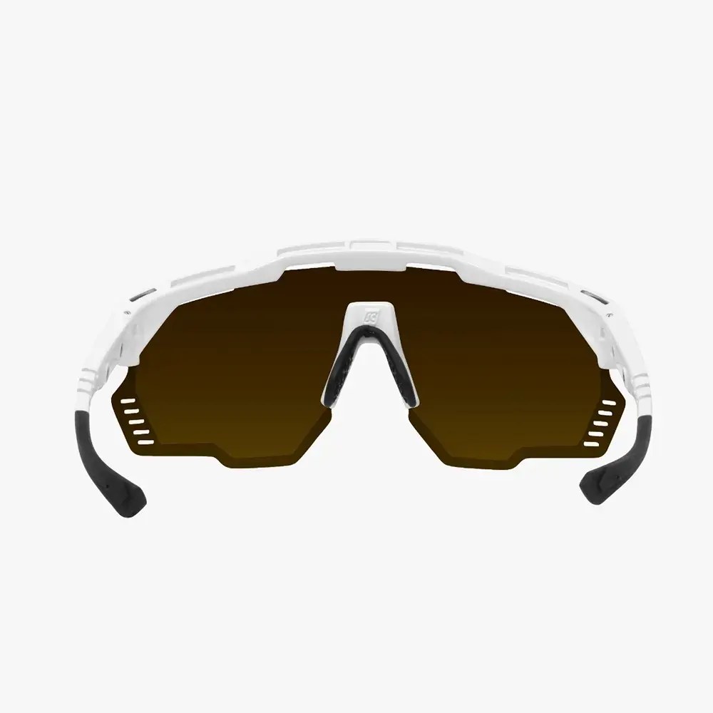 De Scicon Aeroshade Kunken zonnebril tilt sportprestaties naar een hoger niveau met een design dat precisie, comfort en duurzaamheid naadloos combineert. Deze bril is ontworpen om jouw prestaties te optimaliseren, terwijl hij je een kristalhelder zicht biedt. De 5 ventilatiegaten aan de zijkant van de bril voorkomen dat je glazen beslaan doordat ze een optimale luchtstroom genereren. De pasvorm is perfect afgestemd op de contouren van je gezicht, zodat je altijd verzekerd bent van maximaal draagcomfort. Daarnaast zijn de pootjes ook los te verstellen. De lens van deze bril heeft een lichtdoorlatendheid van 17%, wat hem erg geschikt maakt voor zonnige dagen. Eventueel regenwater loopt meteen van de lens af dankzij de oleo- en hydrofobe coating zodat je ook tijdens een bui goed zicht houdt.