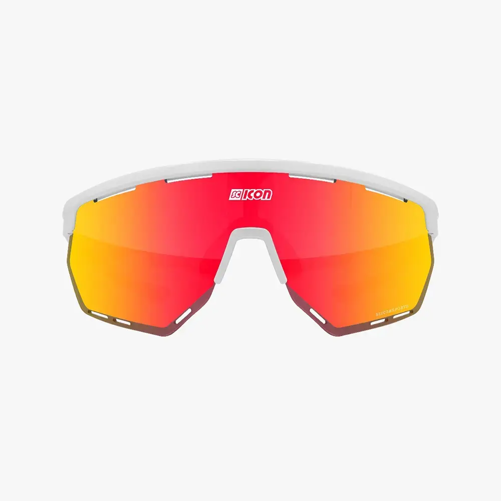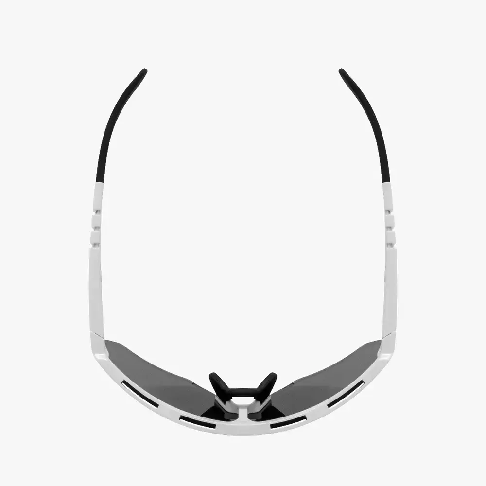 De Scicon Aerowing sportzonnebril combineert jarenlange expertise met een iconisch retro design uit de jaren '90. Ontworpen voor sporters die alleen het beste eisen, biedt deze bril een ongekend breed gezichtsveld dankzij de grote, cilindrische lens. Of je nu op de fiets zit, aan een triatlon meedoet of de bergen in gaat, de Aerowing levert ultieme bescherming en comfort. Met een pasvorm die zich aanpast aan jouw gezicht, blijft hij altijd perfect zitten, zelfs tijdens de zwaarste trainingen. Gemaakt in Italië en ontwikkeld in samenwerking met topatleten – de Aerowing is dé keuze voor topprestaties en stijl. Tevens helpen de 14 ventilatieopeningen in deze bril om het beslaan van de lens te voorkomen. De lens van deze bril heeft een lichtdoorlatendheid van 15%, wat hem erg geschikt maakt voor zonnige dagen. Eventueel regenwater loopt meteen van de lens af dankzij de oleo- en hydrofobe coating zodat je ook tijdens een bui goed zicht houdt.