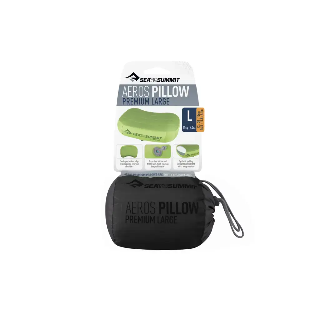 Op zoek naar het perfecte reiskussen? Het Sea To Summit Aeros Premium Opblaasbare Hoofdkussen voelt luxe en comfortabel en is zeer licht. Het hoofdkussen is gemaakt van extreem zacht 50 Denier Polyester materiaal waardoor het comfort erg hoog is. Met het miniventiel blaas je het kussen eenvoudig op en lucht is ook snel weer uit het kussen als je het ventiel indrukt. De vorm van het kussen stabiliseert je hoofd en zorgt ervoor dat je schouders ontspannen liggen.
